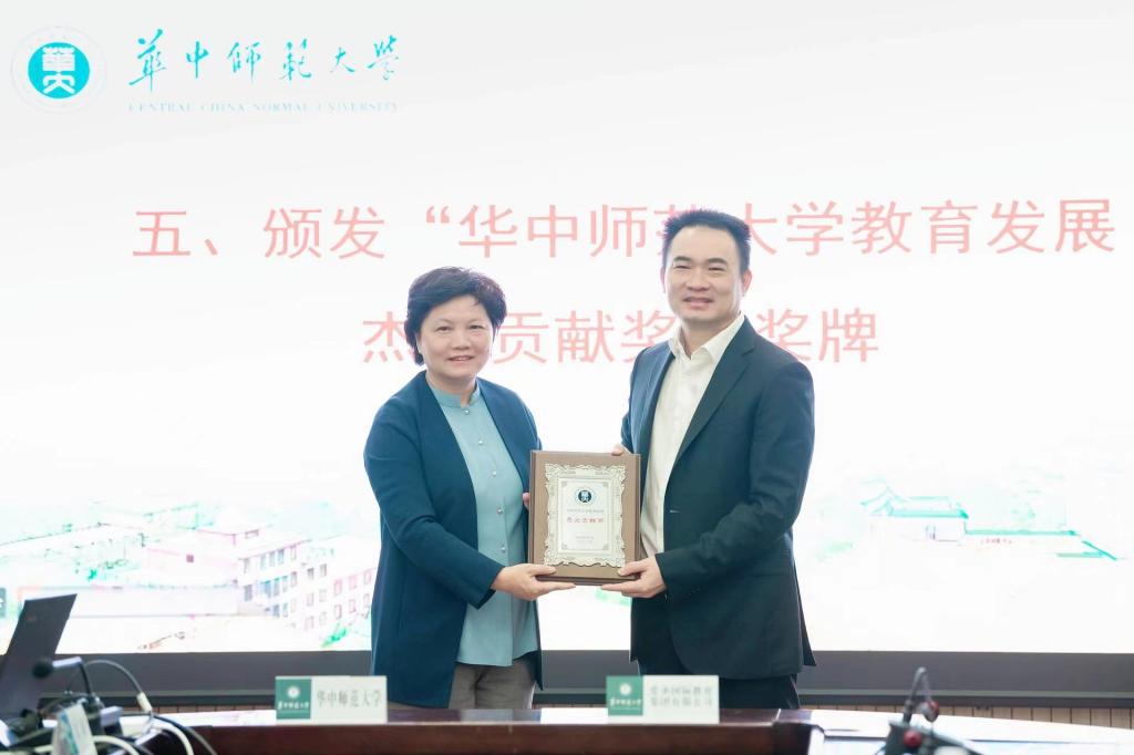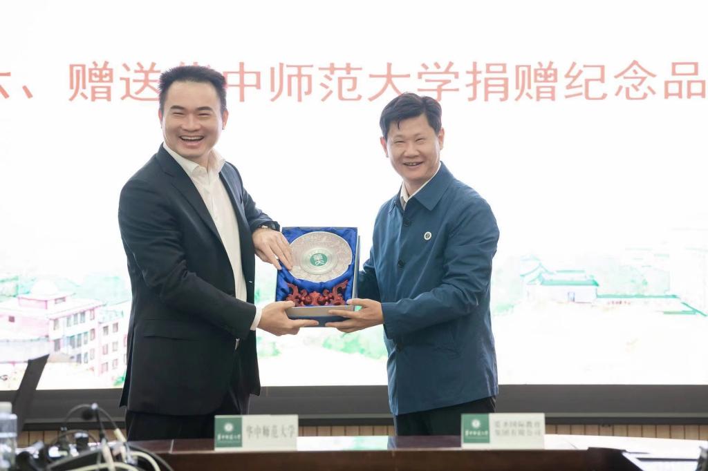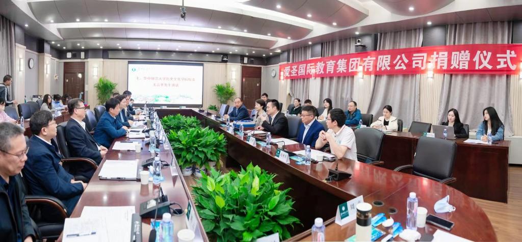 华大在线讯(通讯员 易吉林 罗少琦)10月13日,爱圣国际教育集团有限公司捐赠仪式暨校友座谈会在校举行。爱圣国际教育集团有限公司董事长关云平、爱圣国际教育集团有限公司总裁陈雅、副总裁吴跃,校党委书记赵凌云、校长郝芳华、副校长彭南生以及相关单位负责人和师生代表参加捐赠仪式。仪式由副校长任友洲主持。