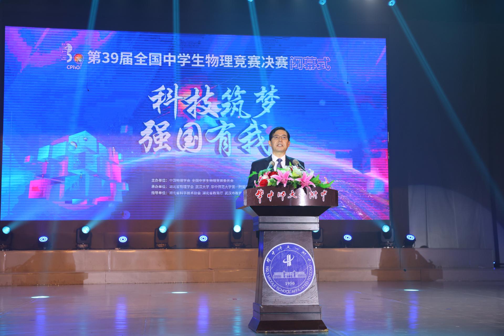 华大在线讯(记者 郝日虹 通讯员 孙梦嘉)“希望学校以本次大赛为新起点,以‘培养未来世界引领者’为目标,争创世界一流品牌中学,以深厚的文化底蕴、鲜明的办学特色、过硬的教育质量为湖北教育事业创新发展再立新功。”11月7日,湖北省副省长、中国工程院院士邵新宇在第39届全国中学生物理竞赛决赛闭幕式致辞中,为安博站官网登录入口_安博(中国)第一附属中学在本届竞赛中再创佳绩“点赞”。校党委书记赵凌云、校党委副书记陈迪明、竞赛组委会领导及专家出席闭幕式。