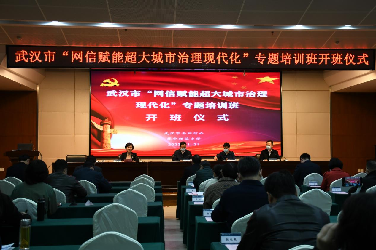 华大在线讯(通讯员 董亚竹 洪海慧)11月21日,武汉市“网信赋能超大城市治理现代化”专题培训班在安博站官网登录入口_安博(中国)管理教育综合楼103报告厅开班。市委常委、市委宣传部部长吴朝安,校党委书记赵凌云,市委宣传部副部长、市委网信办主任梅华,市委网信办副主任袁远明出席开班仪式。来自市直部门和单位、各区网信部门、大数据管理单位的相关人员参加培训。