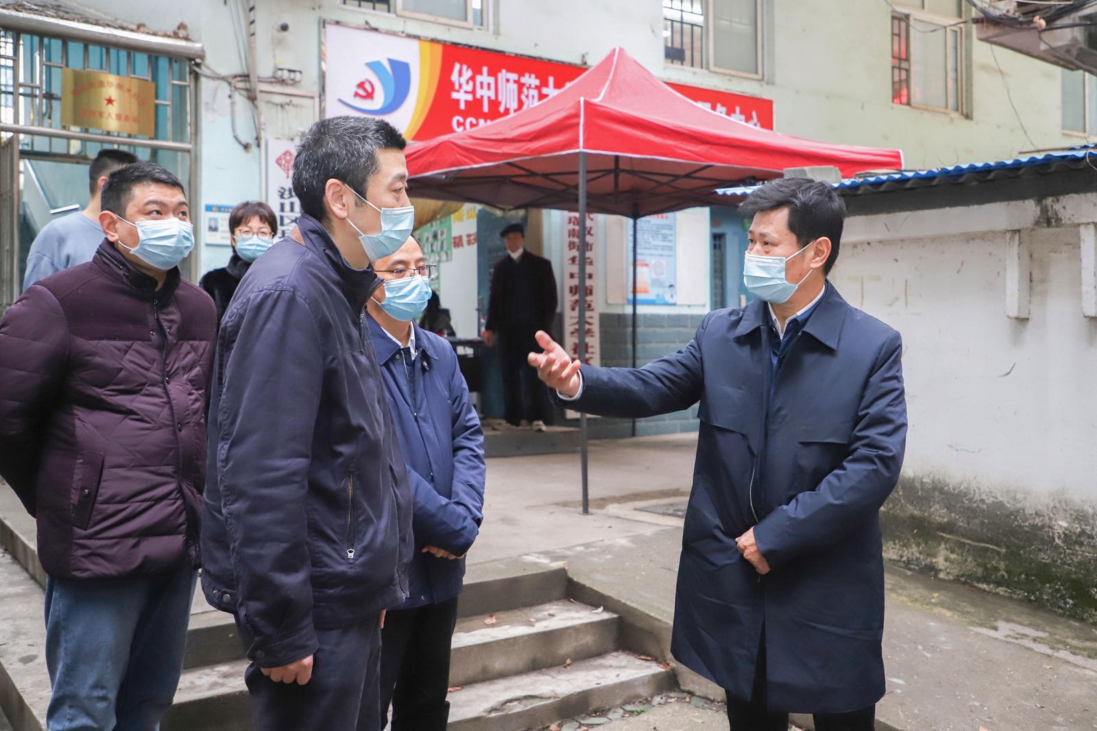 华大在线讯(记者 华轩)11月29日,校党委书记赵凌云,校党委副书记查道林等一行前往安博站官网登录入口_安博(中国)社区、南湖学生宿舍及南湖校区商户,调研疫情防控措施落实、党员干部下沉一线、学生思想动态等情况。学校办、党委组织部、党委宣传部、党委学工部、人事部、后勤保障部、保卫处等相关负责人参加检查。