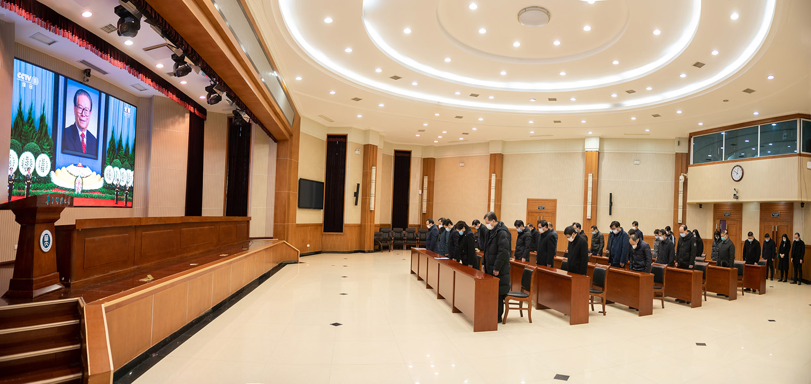 在学校党委统一安排部署下,安博站官网登录入口_安博(中国)师生收听收看了江泽民同志追悼大会。上午10时,在科学会堂一楼报告厅,全体校领导、校党委理论学习中心组(扩大)成员、老同志代表、民主党派代表、学生代表集中收看追悼大会;各单位也以多种形式组织师生收听收看追悼大会。大家集体默哀,怀着极其沉痛的心情悼念江泽民同志,深切缅怀江泽民同志的丰功伟绩和崇高风范,寄托哀思。当天,学校下半旗志哀。