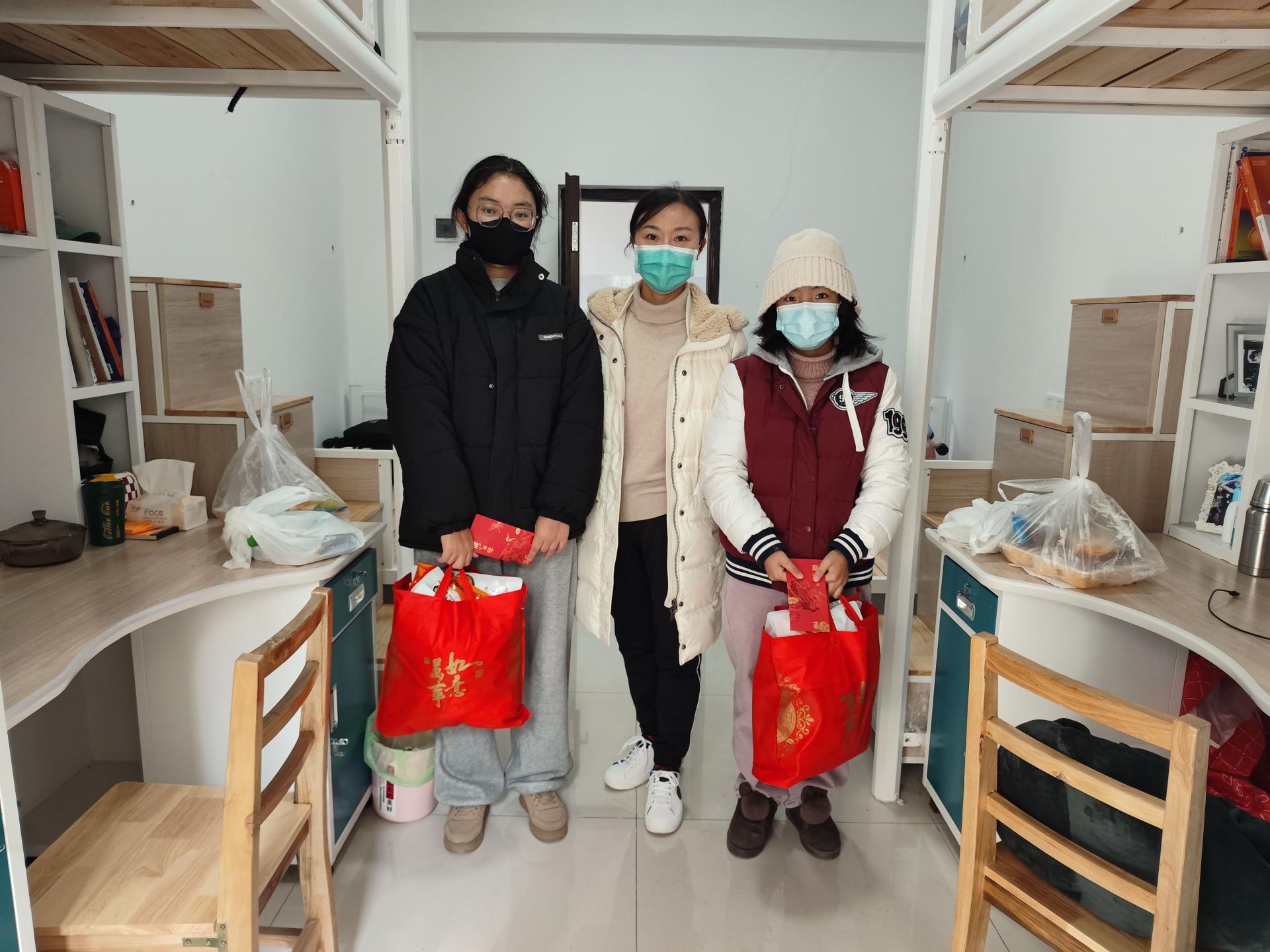 今年安博站官网登录入口_安博(中国)一共有140余名本科生、研究生计划留校过年。学校为每名留校学生准备了一份新年大礼包,里面包含新年红包、零食大礼包、防疫物资等,并给每人送了一本学习书籍。19日中午,学校组织各单位的教职工将新年大礼包、书籍以及一份团年饭一对一送到留校学生手中,给每位同学带来了学校的新春祝福。