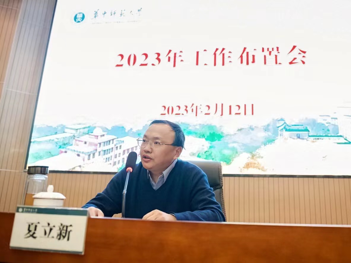 华大在线讯(记者 毛军刚)春寒料峭时,奋蹄赶秋实。2月12日,学校开学工作布置会在科学会堂一楼报告厅举行。会议以线上线下相结合的方式召开。全体校领导、校长助理、中层干部、教代会执委、工会常委、各民主党派基层组织和统战团体负责人参会。校党委书记夏立新主持会议并讲话,校长郝芳华部署2023年工作。