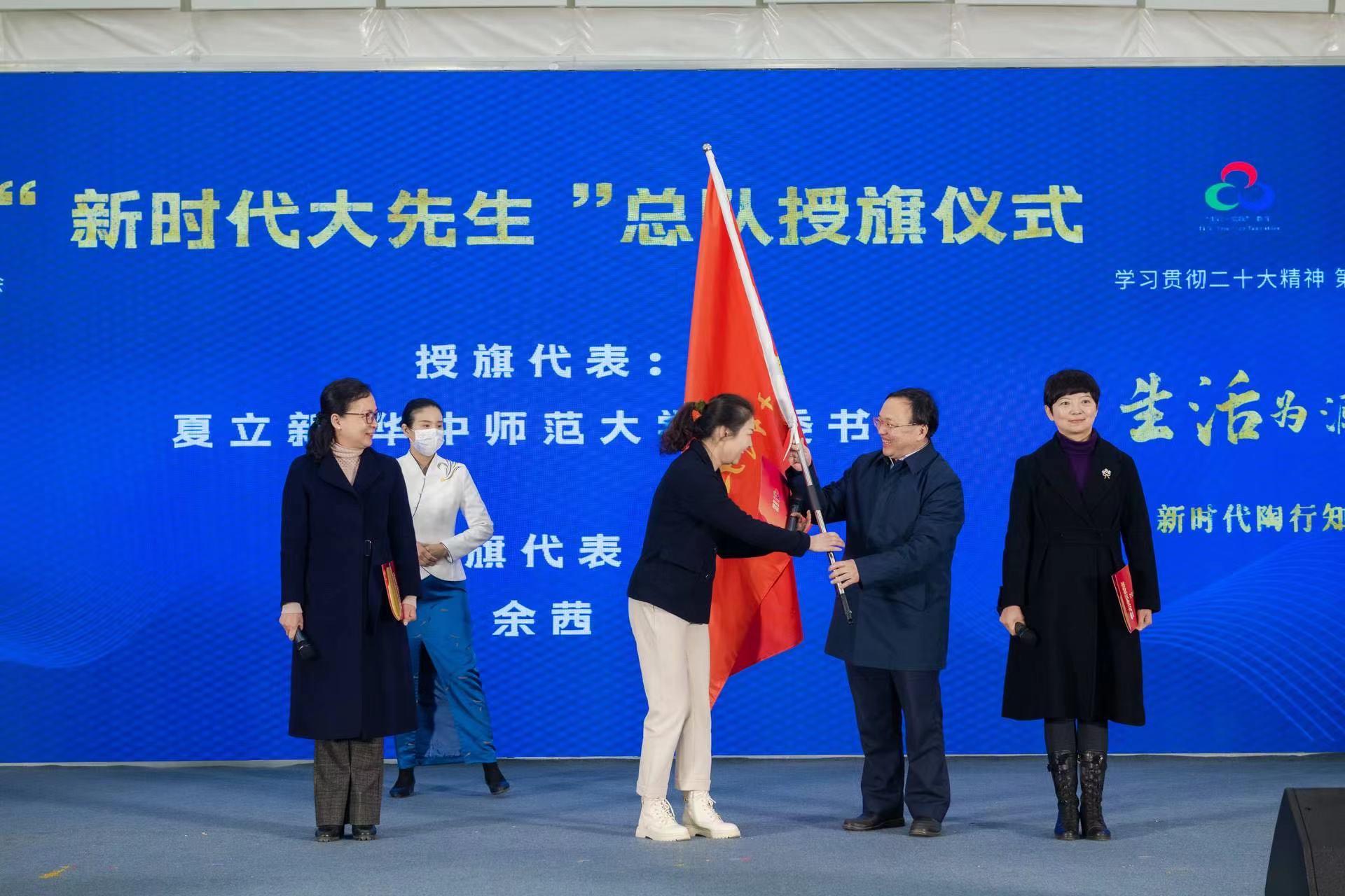 周洪宇教授为“新时代小先生”总队代表授旗