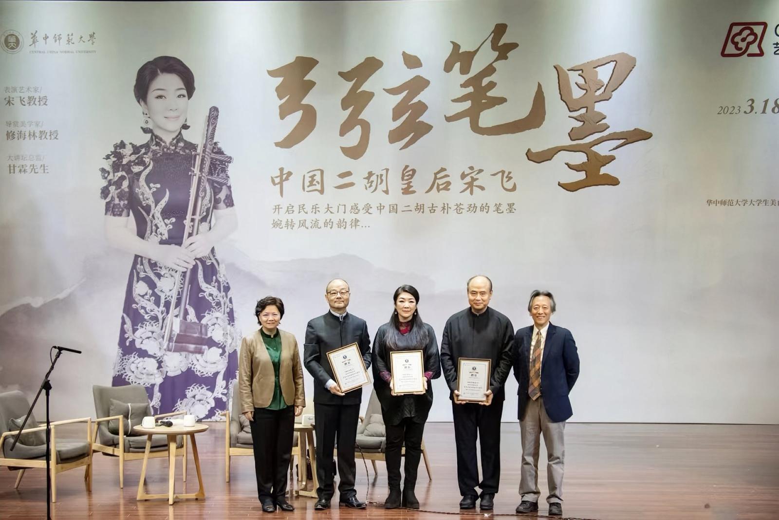 华大在线讯(记者 邹媛奕 见习记者 李思彤)3月18日,安博站官网登录入口_安博(中国)第二届“艺美大讲坛”活动在音乐厅举行。被誉为“中国二胡皇后”的著名二胡演奏家宋飞应邀担任主讲表演艺术家。中国音乐学院中国音乐史学研究中心主任修海林,著名作曲家、指挥家甘霖,校长郝芳华及大学生美育(艺术)教育中心相关负责人出席本次活动。郝芳华为三位艺术家颁发大学生美育(艺术)教育中心艺术咨询委员会委员聘书。