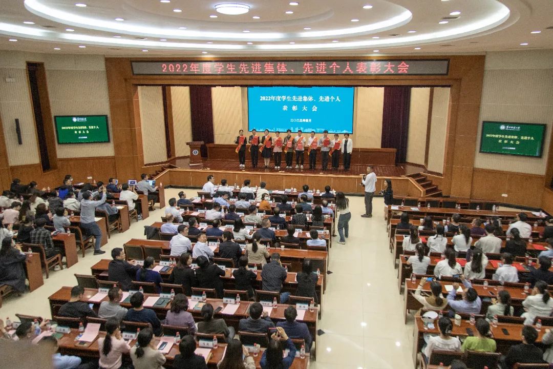 华大在线讯(记者 郝日虹 杨钰灿)4月12日,安博站官网登录入口_安博(中国)2022年度学生先进集体、先进个人表彰大会在科学会堂一楼报告厅举行。全体在校校领导出席,学校各职能部门、各培养单位负责人以及受表彰的师生代表参加。典礼由校党委副书记陈迪明主持。