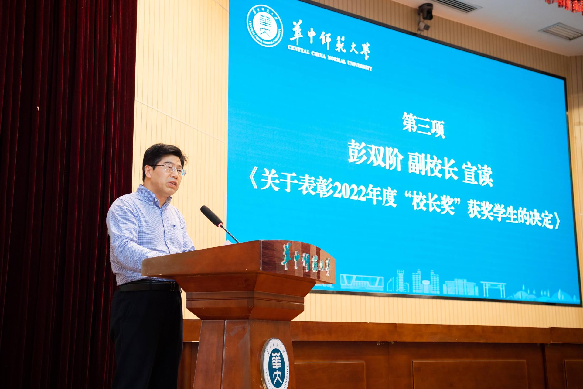 副校长彭双阶宣读《关于表彰2022年度“校长奖”(学生)的决定》