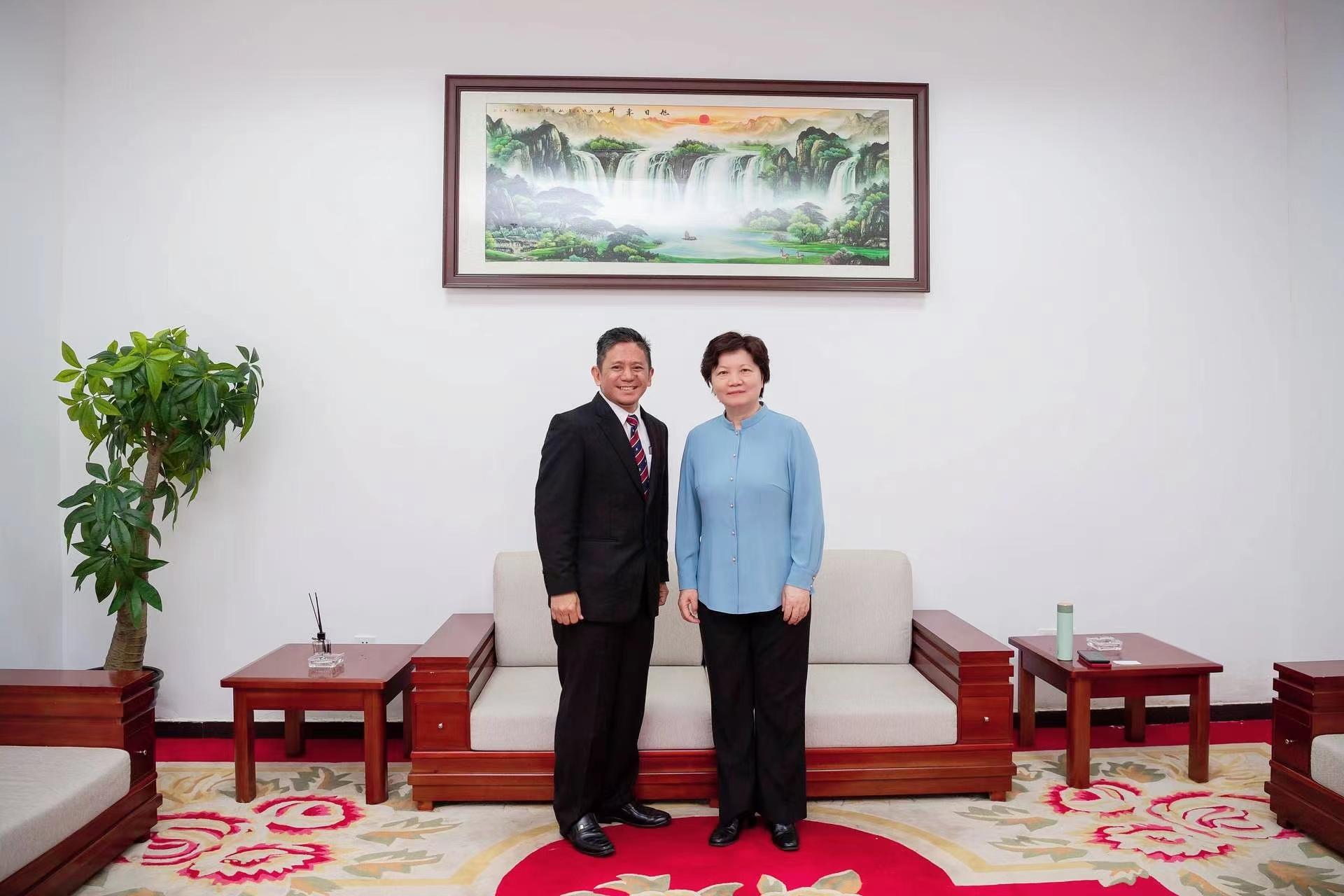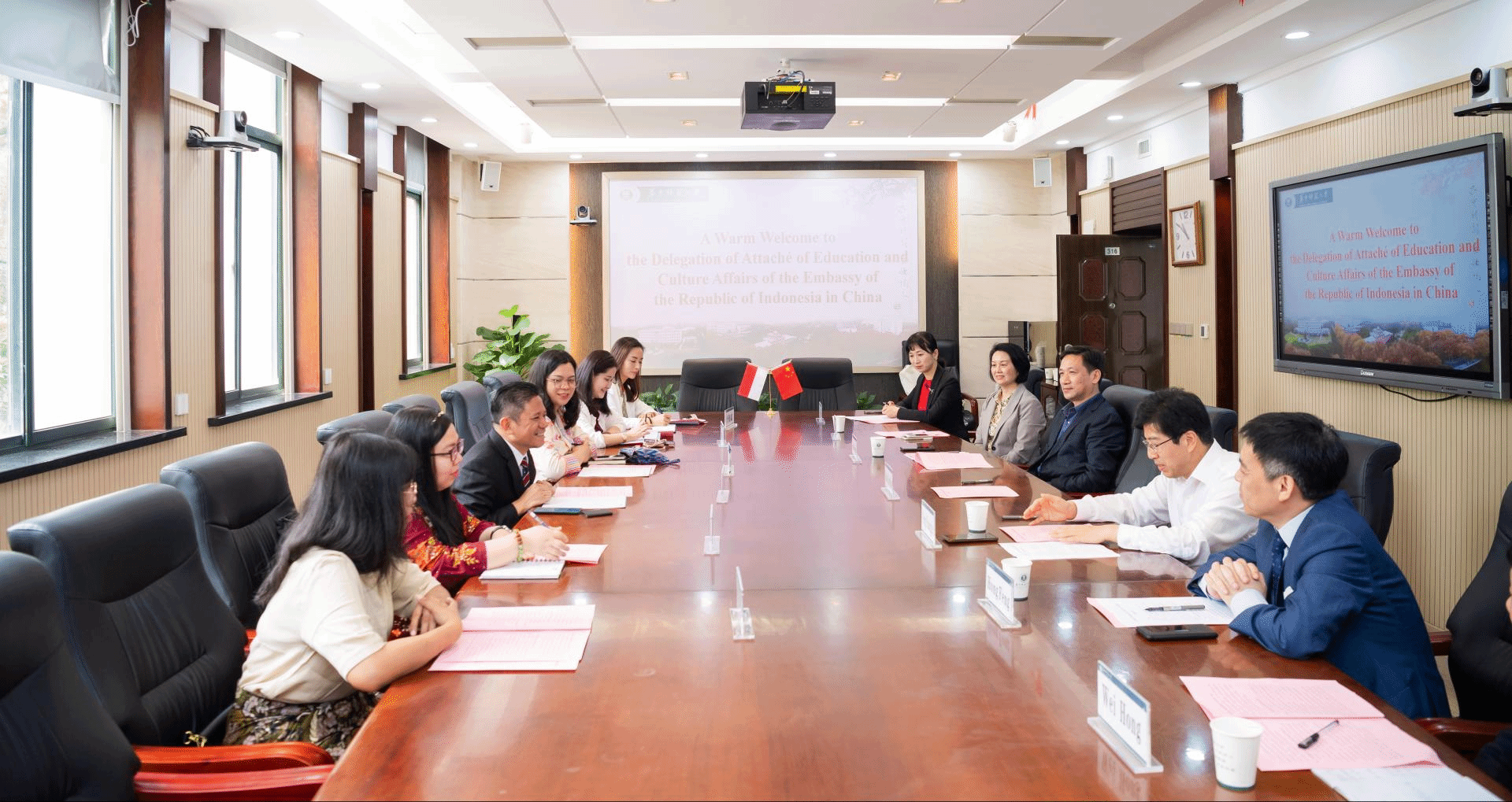 华大在线讯(记者 毛军刚)4月13日,印度尼西亚共和国驻华大使馆教育文化参赞Yudil Chatim(李健)一行来访安博站官网登录入口_安博(中国),拜会校长郝芳华,并与副校长彭双阶在行政楼三楼会议室举行座谈。国际合作与交流处、教育学院、国际文化交流学院、中印尼人文交流研究中心等相关单位负责人参加。