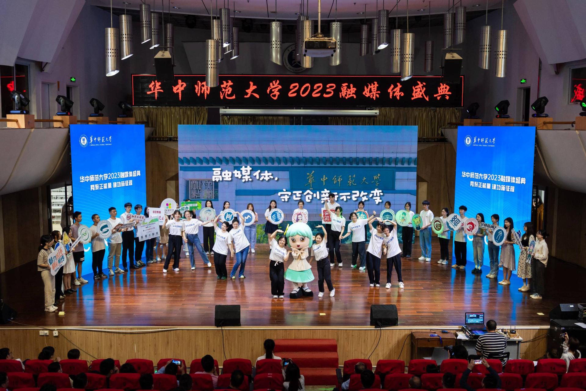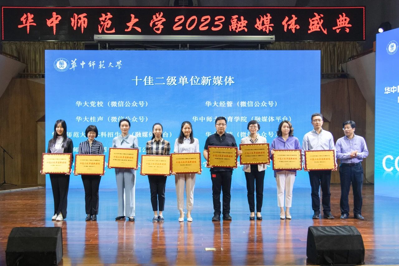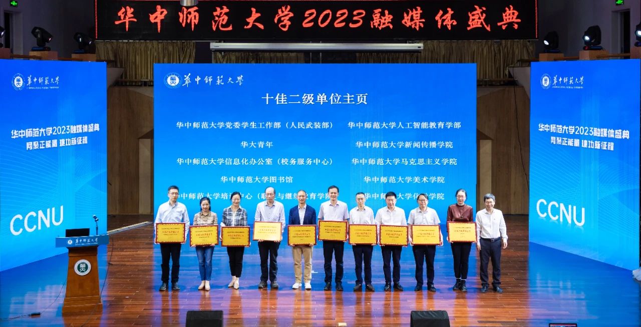 副校长彭双阶、副校长李鸿飞、校党委副书记陈迪明,湖北省委网信办社会工作处处长李涛,楚天都市报(极目新闻)党委委员、副总编辑罗欣等领导嘉宾出席盛典。盛典期间,学校对2022年度融媒体评选、网络文化节获奖单位及个人进行了表彰,公布了华大融媒年度十大粉丝。
