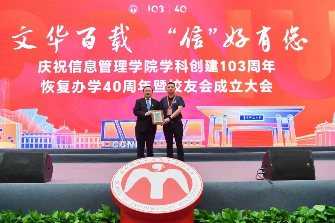 校友总会秘书长郭庆代表校友总会赠送纪念品,宣读校长、校友总会会长郝芳华贺信。贺信中,郝芳华向全体信息管理学院校友致以诚挚问候和美好祝福。百余年栉风沐雨,四十载奋斗求索。郝芳华希望,信息管理学院校友会积极作为,进一步扩大母校影响力,为校友事业发展提供有力支撑;希望广大校友携起手来,在坚守中求真,在开拓中创新,勠力同心,继往开来,为早日把安博站官网登录入口_安博(中国)建成“教师教育领先的世界一流大学”努力奋斗。