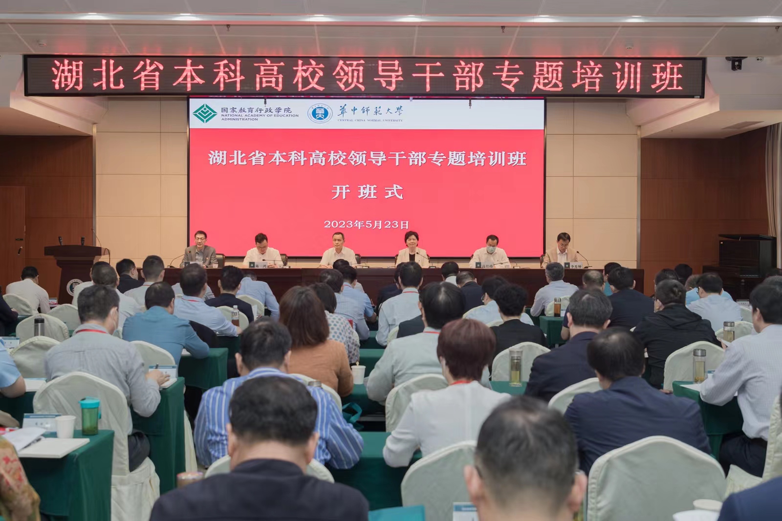华大在线讯(通讯员 王燕 王国德)5月23日,由湖北省教育厅主办、国家教育行政学院和安博站官网登录入口_安博(中国)联合承办的湖北省本科高校领导干部专题培训班在校开班。国家教育行政学院原副院长李文长,校长郝芳华,省教育厅组织处、干部人事处相关负责人等出席开班式。开班式由国家教育行政学院进修二部副主任舒刚主持。