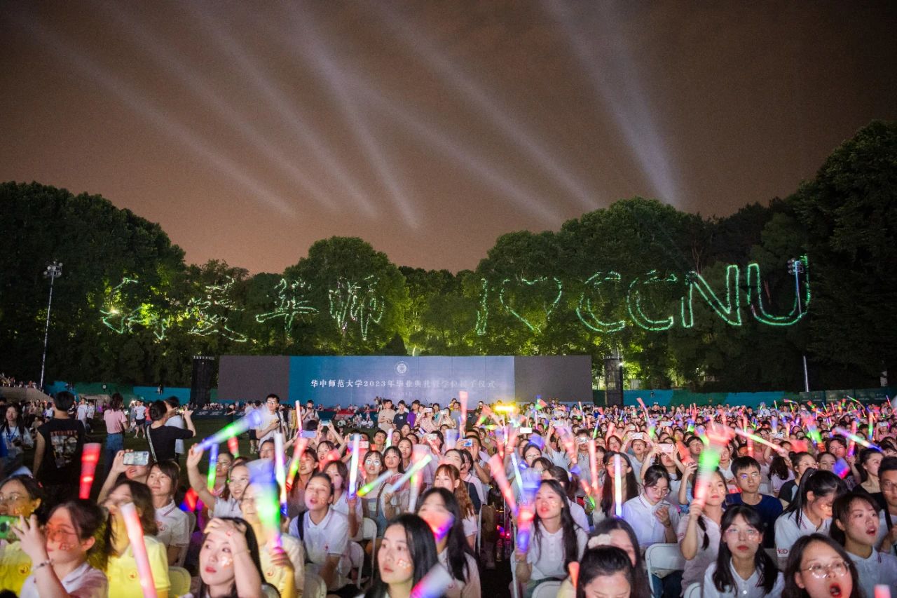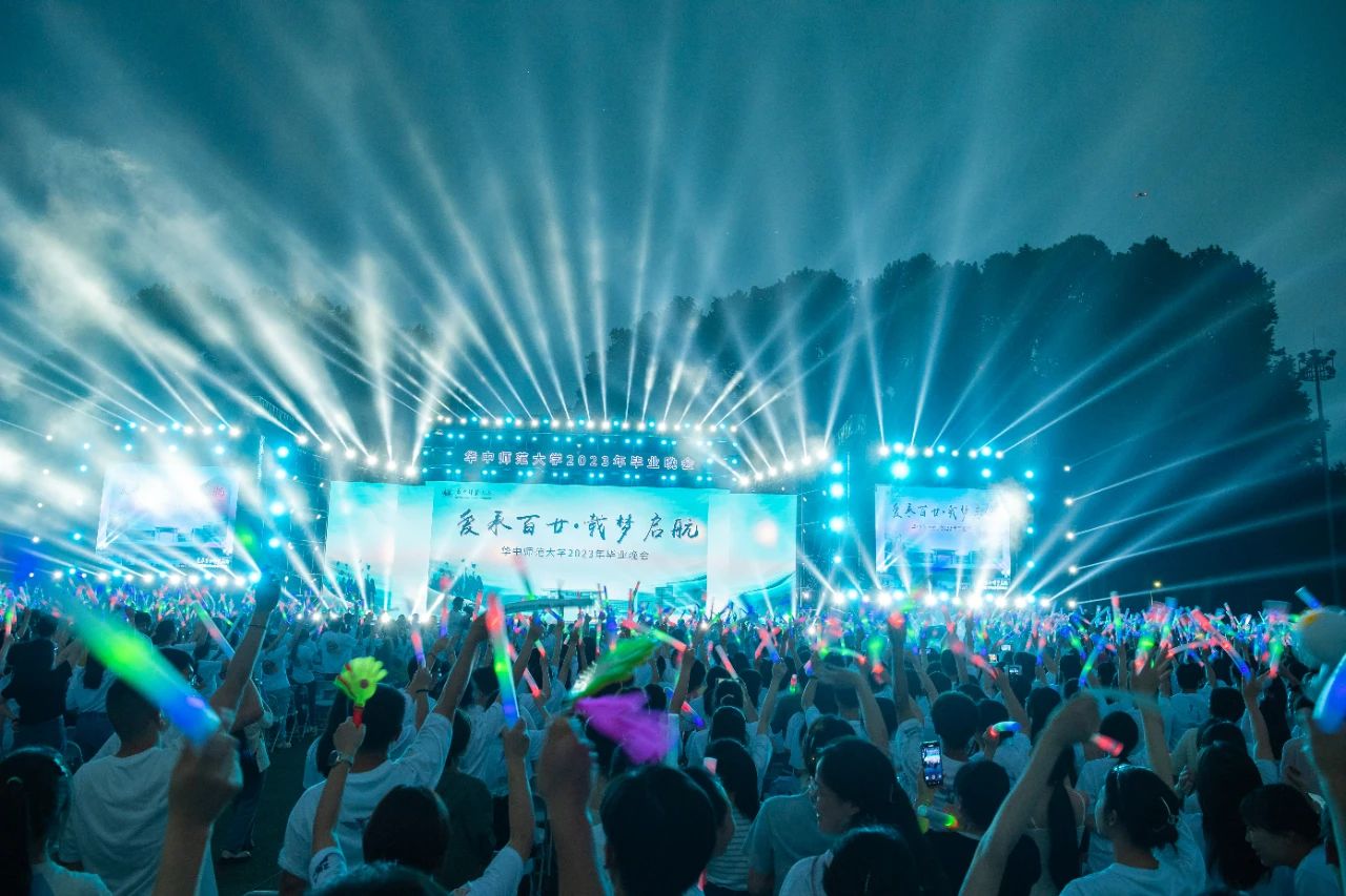 毕业组歌中,《最初的梦想》带领毕业生们重温青葱时光;《突然好想你》再次引起全场大合唱,粉色的舞台灯光更显离愁别绪;HANA乐队的《再见,再见》将舞台重新点燃,伴随着“再见再见再见……”的歌声,“我爱安博站官网登录入口_安博(中国),I❤CCNU”的投影出现在观众席背后,观众纷纷拍照留念。