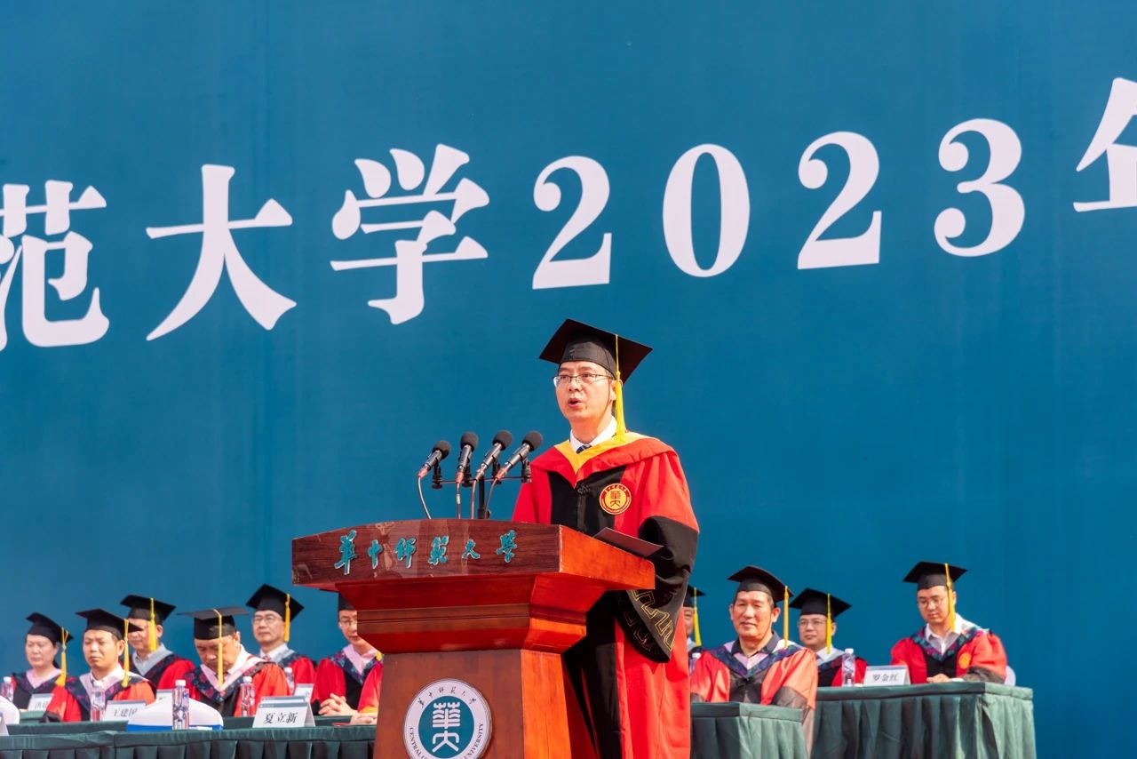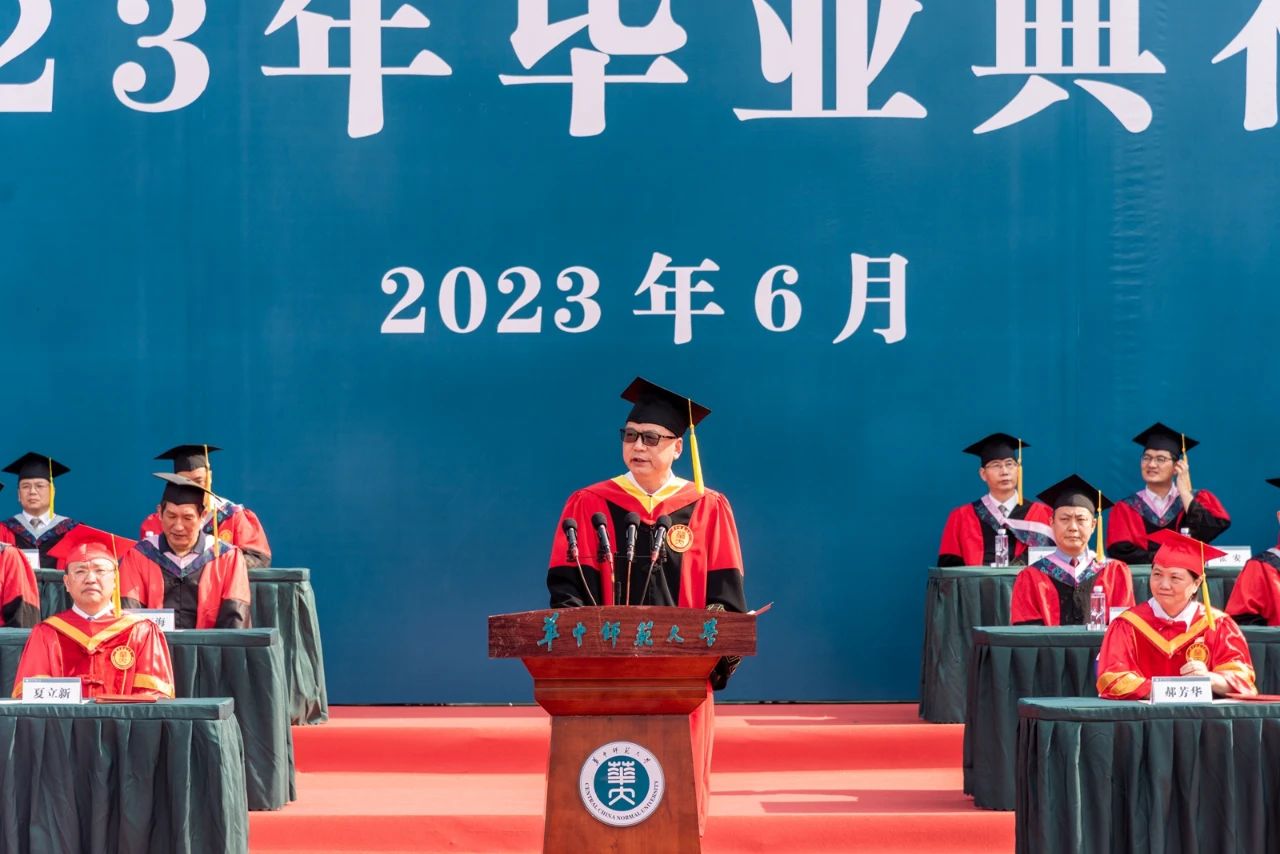 教师代表、马克思主义学院院长、博士生导师万美容教授回顾了自己在安博站官网登录入口_安博(中国)求学、工作的四十五个春秋的奋斗岁月,感恩桂子山给予他丰富的知识、美丽的爱情和有意义的人生。他希望毕业生们在未来的人生道路上不忘母校培养,不负国家期待,传播安博站官网登录入口_安博(中国)精神,实现人生价值。