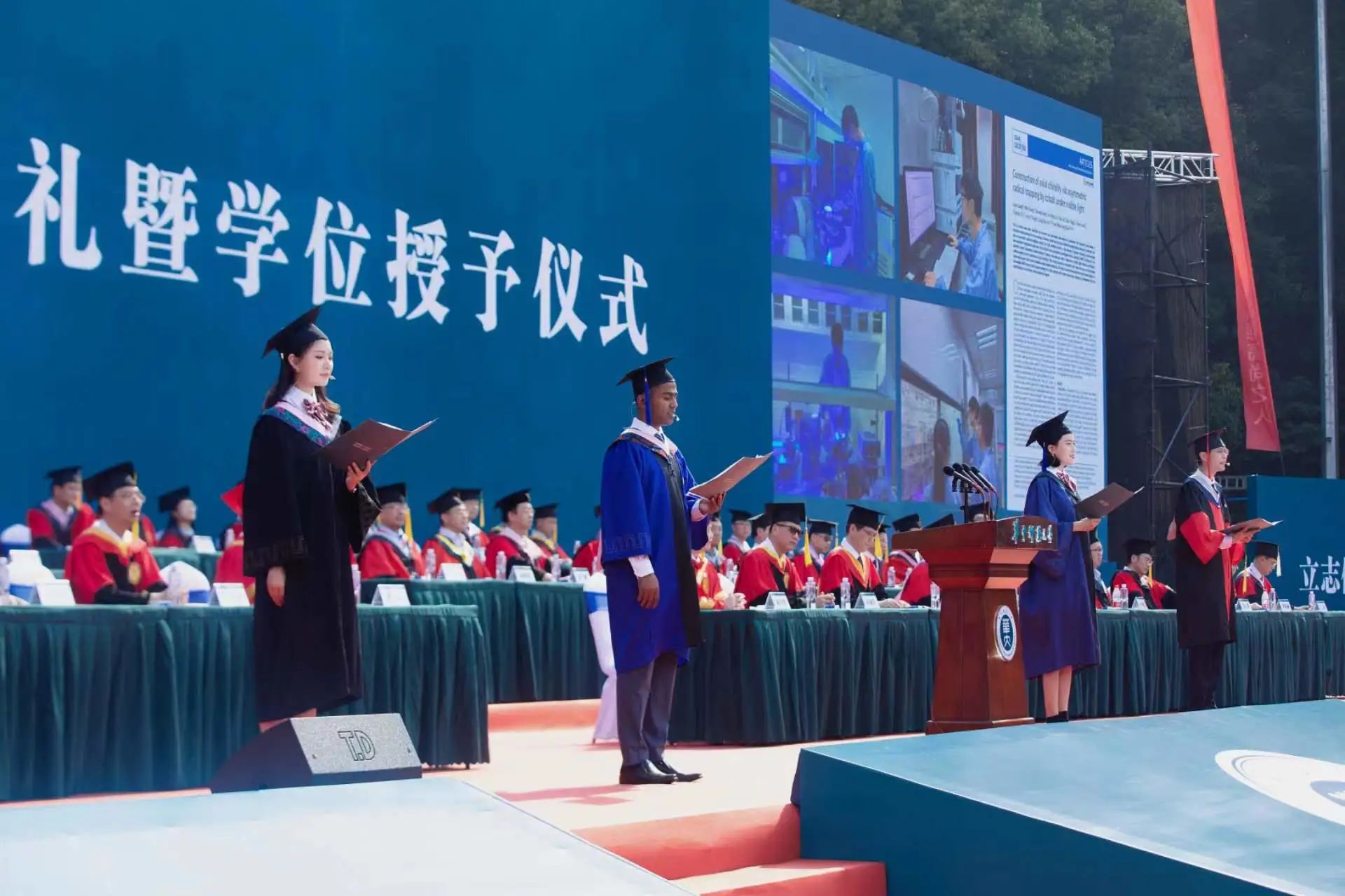 乘风破浪正青春,逐梦启航向未来。80名导师分列佑铭体育场两侧,为所有毕业生一一拨穗,并颁发学位证书。2023届毕业生们将携着师长、同窗的殷殷嘱托和深深祝福,踏上崭新征程,奔赴广阔天地。