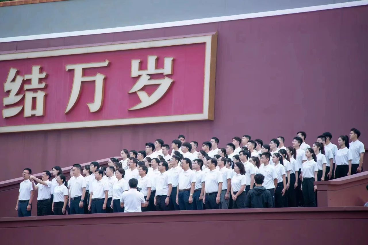 凌晨4点20分,夜色正酣,师生代表们迎着微凉的晨风,列队集结,乘车前往天安门广场。五时许,师生代表在观礼台上站定,期待着国旗升起这一庄严时刻的到来。破晓时分,国旗护卫队迈着整齐划一的步伐从天安门城楼中走出,以昂扬之姿向前铿锵行进,全体师生静静注视。
