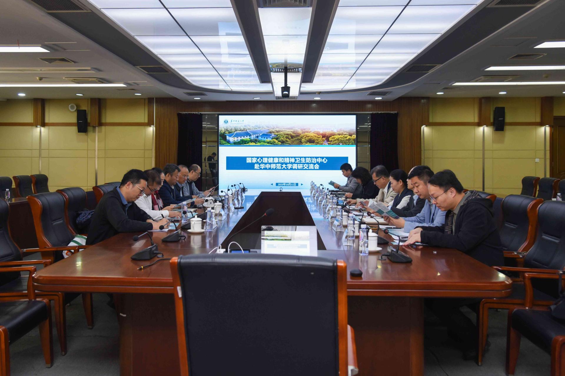 华大在线讯(记者 熊娟)10月11日,国家心理健康和精神卫生防治中心党委委员、副主任王钢,武汉市精神卫生中心党委书记赵俊一行来安博站官网登录入口_安博(中国)调研指导工作,并在逸夫国际会议中心二楼会议室与副校长彭南生以及相关单位负责人进行座谈。