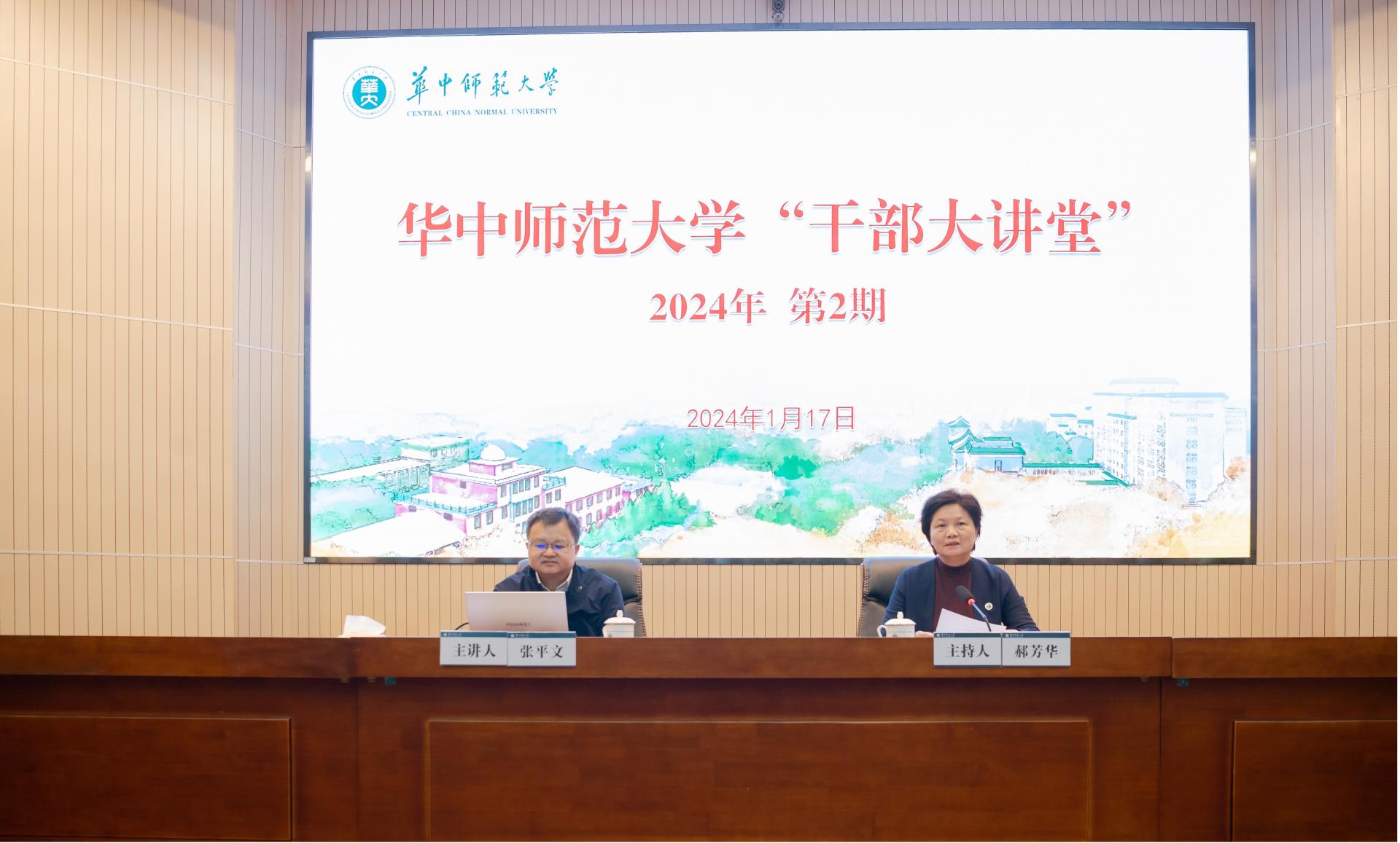 华大在线讯(通讯员 张琳)1月17日,学校2024年第2期“干部大讲堂”在科学会堂一楼报告厅举行。武汉大学校长、中国科学院院士张平文以《学科建设:理念、行动与保障》为题作辅导报告。活动由校长郝芳华主持,全体在校校领导、全校中层干部以线上线下相结合的方式参加。