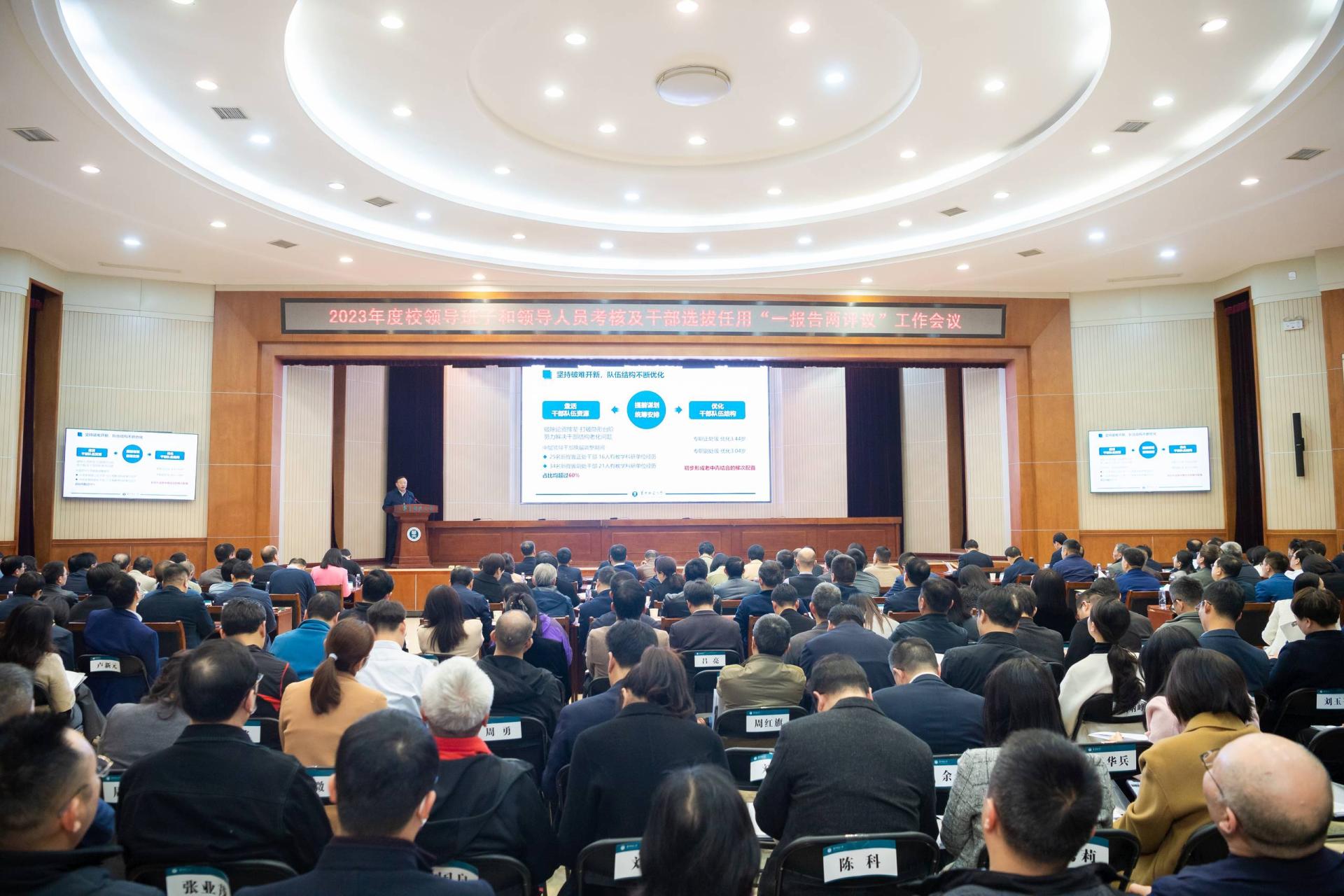 华大在线讯(通讯员 张栩晨)3月21日,安博站官网登录入口_安博(中国)召开2023年度校领导班子和领导人员考核及干部选拔任用“一报告两评议”工作会议。校领导班子成员、全体中层干部及其他各方面代表参会。会议由校长彭双阶主持。