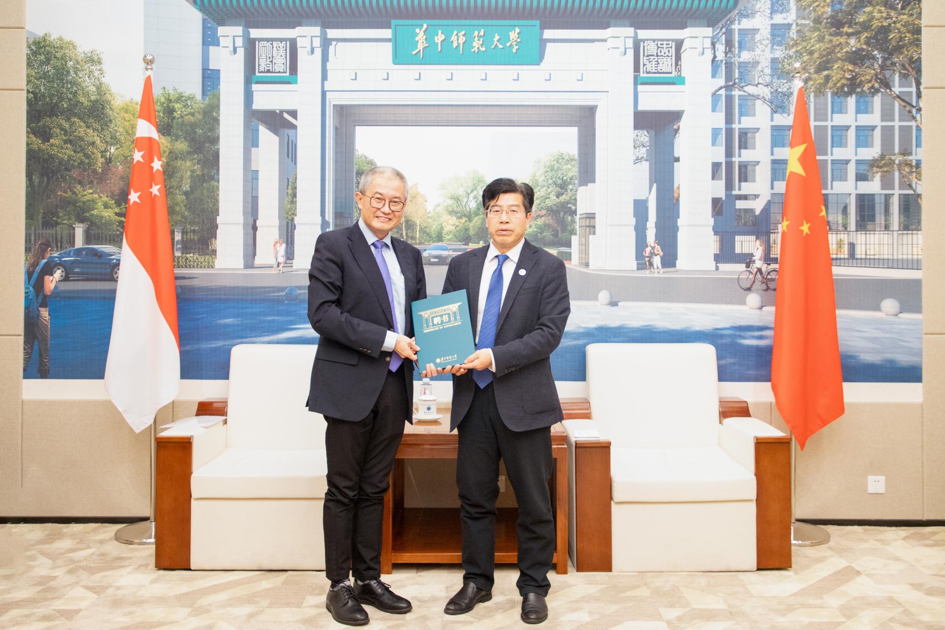 华大在线讯(通讯员 曹璐萍)4月9日,新加坡南洋理工大学常务副校长兼教务长林杉(LING San)来访并受聘为安博站官网登录入口_安博(中国)名誉教授。聘任仪式在校史馆一楼贵宾厅举行,校长彭双阶出席。人事部、国际合作与交流处、数学与统计学学院相关负责人参加。