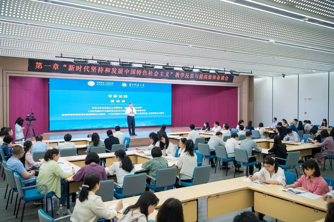 备课会按照“点—线—面”的思路,分为思想困惑点阐释、教学重难点汇报、教学专题方案设计、小组集体研讨及专家总结四大环节,就如何上好课程第一章“新时代坚持和发展中国特色社会主义”形成共识性方案。