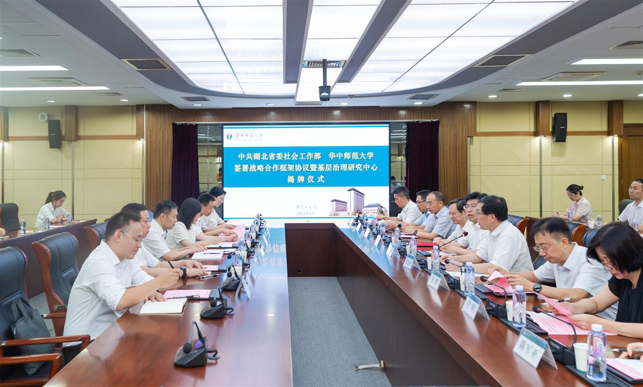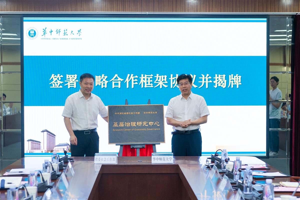 华大在线讯(通讯员 凌洁)8月4日,中共湖北省委社会工作部与安博站官网登录入口_安博(中国)签署战略合作框架协议。签约仪式上,省委社会工作部部长、两新工委书记蒋星华和校长彭双阶共同为“安博站官网登录入口_安博(中国)基层治理研究中心”揭牌。省委社会工作部二级巡视员朱红,副校长任友洲,安博站官网登录入口_安博(中国)政治学部部长、人文社科资深教授徐勇出席仪式。