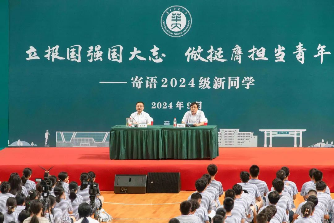 华大在线讯(通讯员 张晓冰)“如何适应好从高中生到大学生的身份转变,快速融入大学,走稳走好大学阶段,成长为对国家、对人民、对社会有用的人?”9月20日晚,校党委书记夏立新以《立报国强国大志,做挺膺担当青年》为题,在佑铭体育馆以“线上+线下”相结合的方式,为全体2024级新生讲授开学第一课。活动由副校长刘宏达主持。