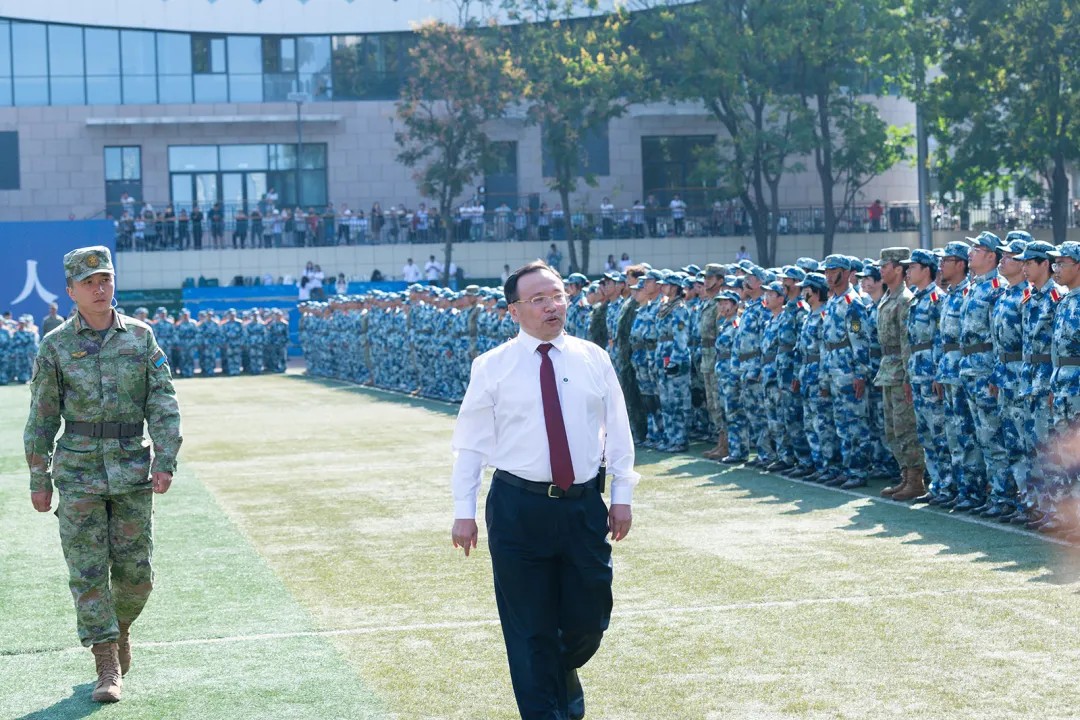 开学典礼后,2024级本科新生军训总结汇报表演。夏立新在军训团团长的陪同下对各学院方阵进行检阅。各方阵队列以昂扬饱满的状态展现了新安博站官网登录入口_安博(中国)人锐意进取的精神面貌。