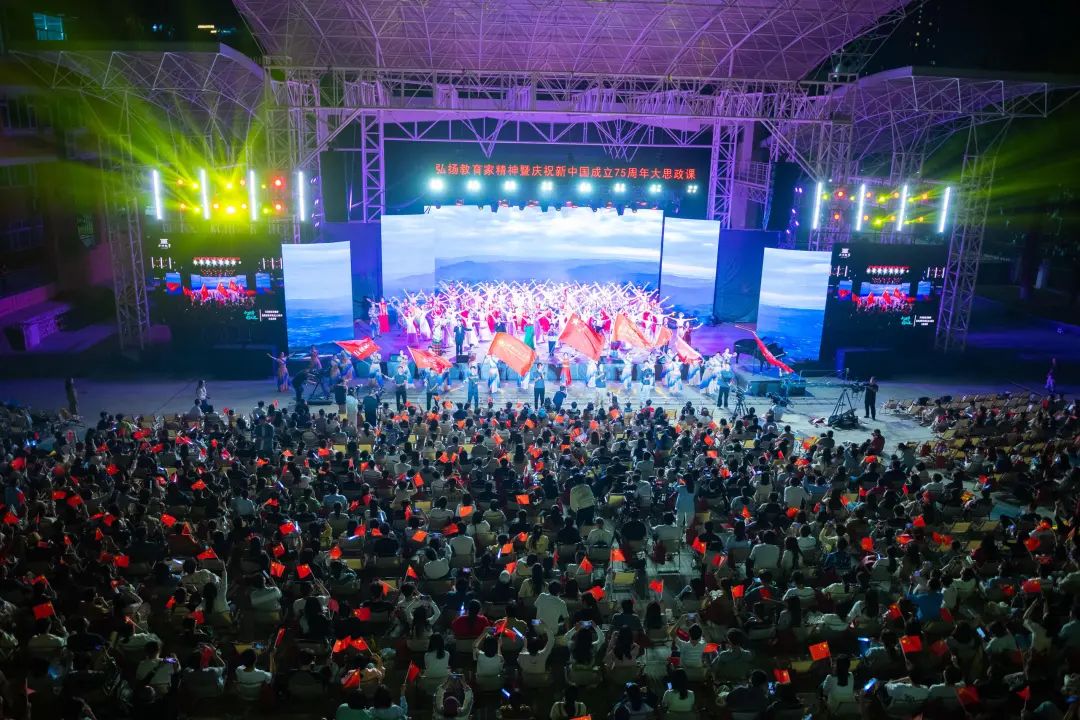 华大在线讯(记者 华轩)“从千湖之省,到万瀑之乡,攀援高山,跋涉深涧;从荆楚大地,到八桂田园,踏步荆棘,蒙犯霜露……”10月10日,“山海有界,青绿无垠——弘扬教育家精神暨庆祝新中国成立75周年”大思政课在露天电影场举行。来自教育部师范教育协同提质计划安博站官网登录入口_安博(中国)组团高校的3000余名师生现场同上一堂沉浸式大思政课,共立“教育强国,师范有为”的铮铮誓言。