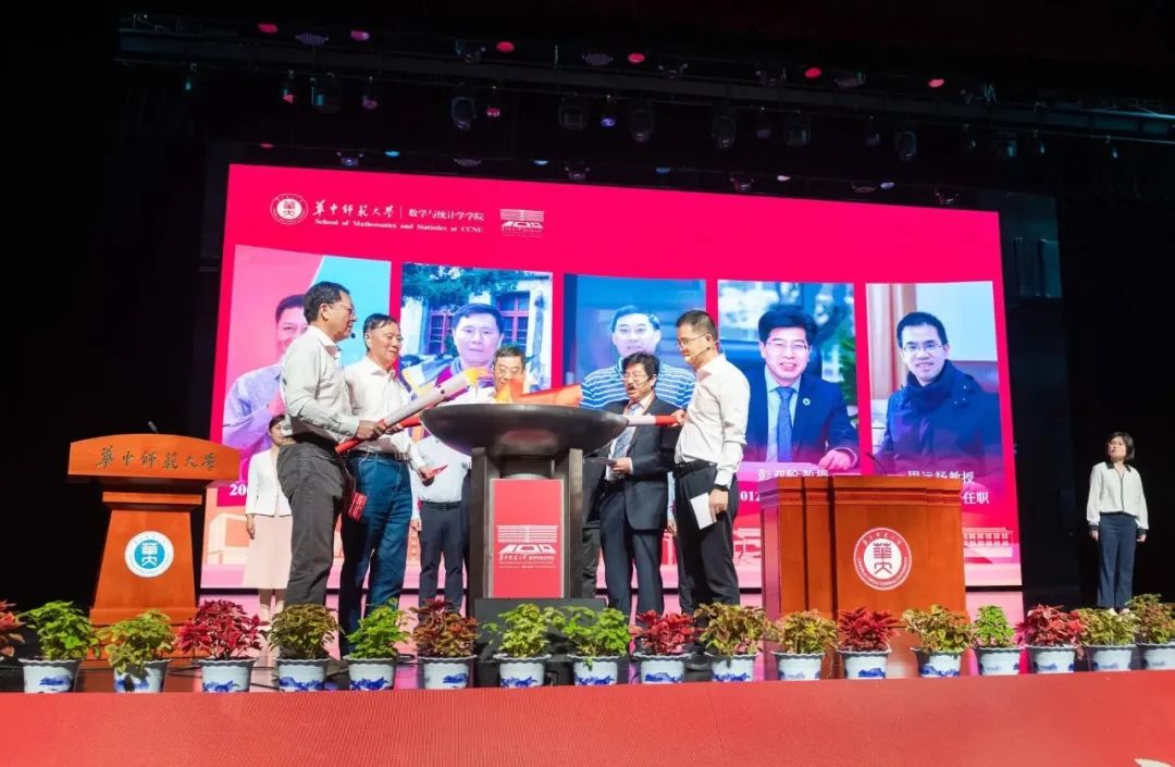 初心如磐,矢志开天地;薪火赓续,砥砺振弦歌;踔厉奋发,阔步启新程。数统学院建院以来五位院长邓引斌、李工宝、朱长江、彭双阶、周远扬传递火炬,共同点燃象征数统学院和数学学科蓬勃发展的火焰,表达对发展与传承的期许和美好祝愿。