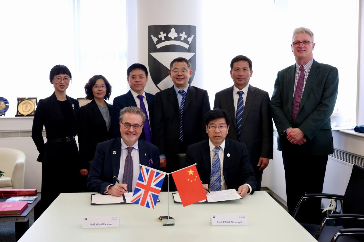 访问邓迪大学期间,彭双阶与校长伊恩·格里斯佩(Iain Gillespie)、副校长布莱尔·格鲁布(Blair Grubb)、中国区主任裘知等会谈并签署两校合作备忘录。格里斯佩表示,作为华中师大名誉教授,他始终关心学校发展,希望两校在国际化人才培养、教师互访、学生流动、联合科研中心设立等方面深度合作,推进两校共同发展,为中英人文交流作出更多贡献。彭双阶一行还访问了邓迪大学生命科学学院,与相关负责人就两校学生联合培养和短期交流项目进行了深入沟通,并参观了相关实验室。
