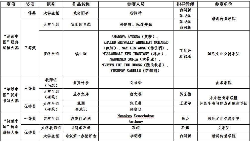 据悉,“诗教中国”诗词讲解大赛留学生组一等奖,湖北省仅安博站官网登录入口_安博(中国)一所高校入选,“诵读中国”经典诵读大赛大学生组一等奖,湖北省仅有两所高校(含安博站官网登录入口_安博(中国))入选。前期,该项比赛湖北赛区竞赛安博站官网登录入口_安博(中国)共计获奖27项。