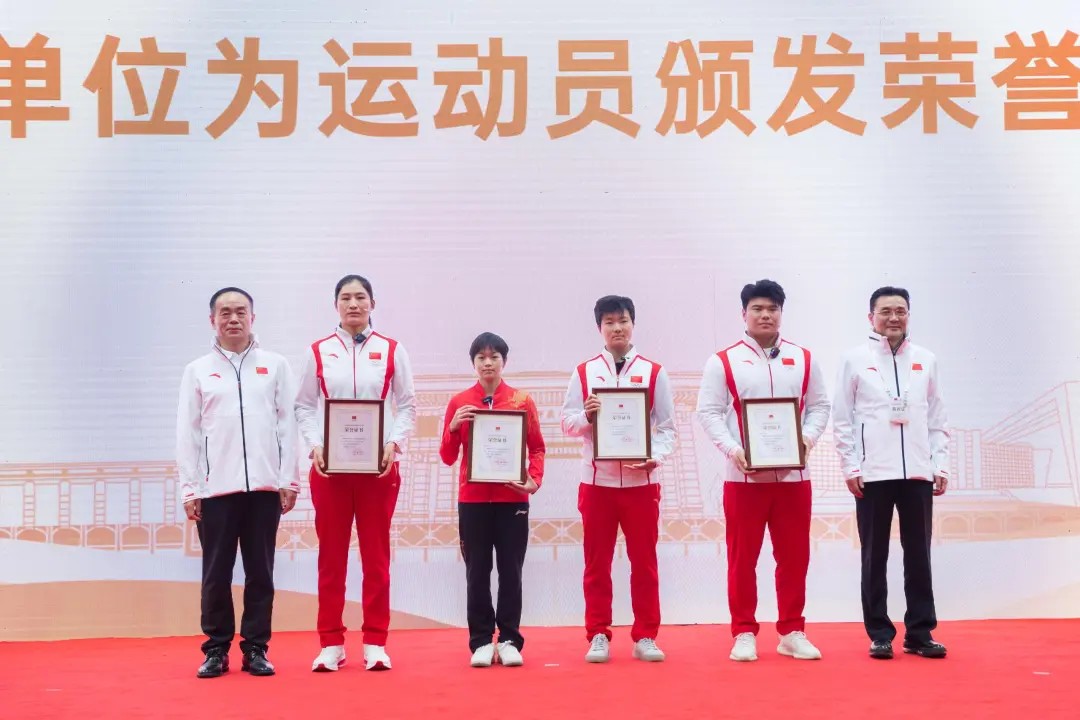 于建勇和水兵为四位奥运健儿颁发荣誉证书
