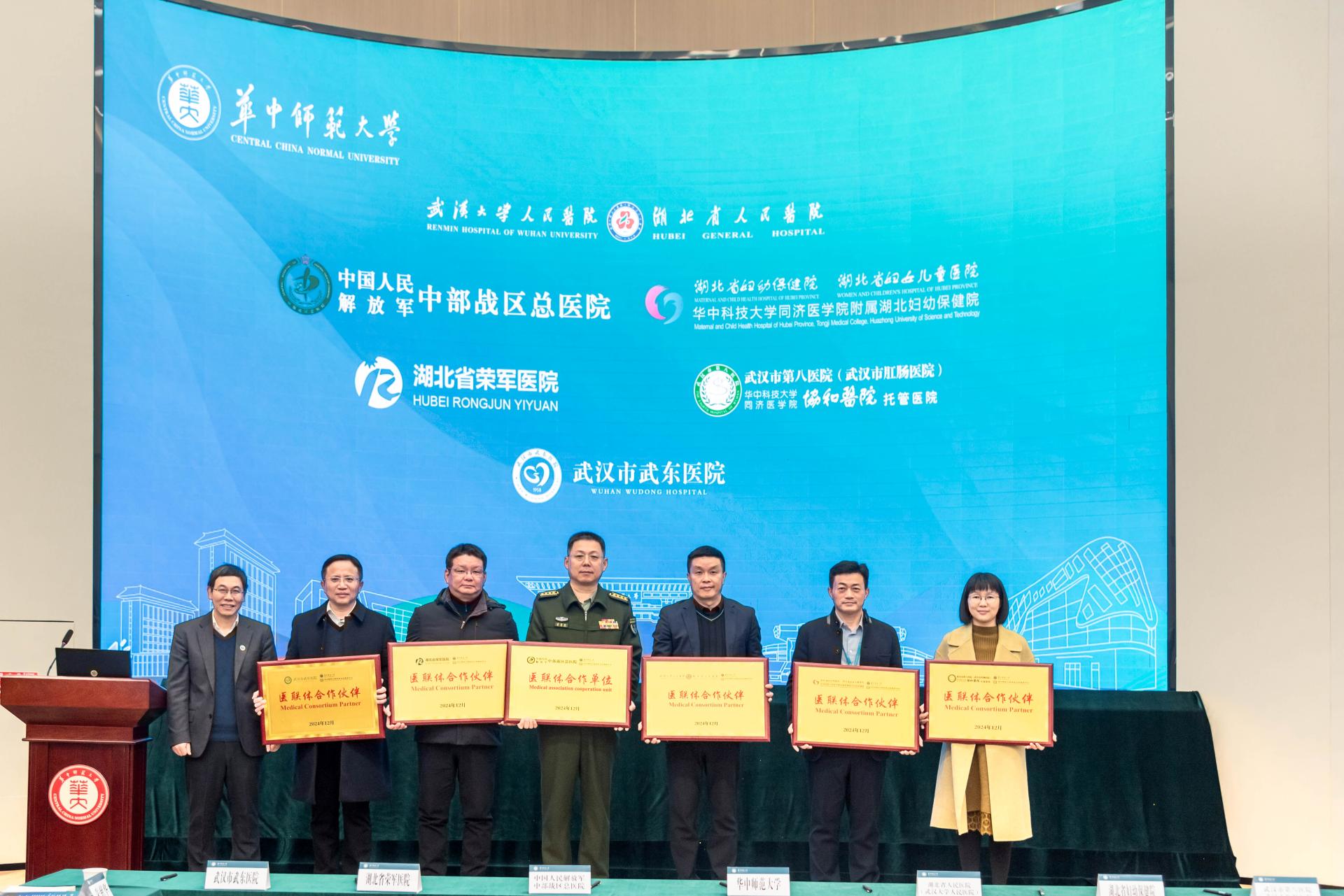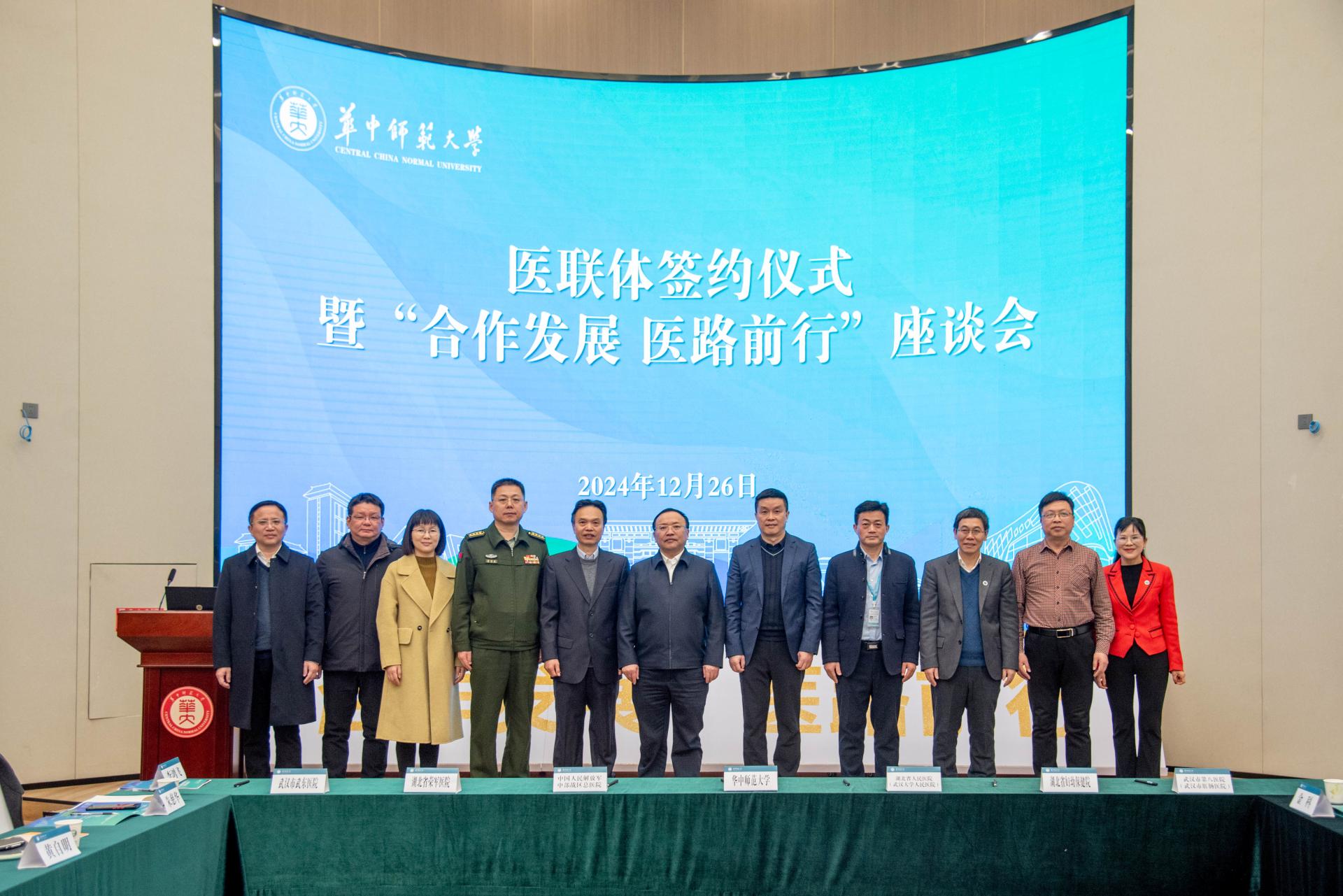 华大在线讯(通讯员 席环环)12月26日,医联体签约仪式暨“合作发展,医路前行”座谈会在校举行。湖北省人民医院(武汉大学人民医院)党委常委、副院长耿庆,中国人民解放军中部战区总医院副院长温宪昌,湖北省妇幼保健院党委委员、副院长黄自明,湖北省荣军医院院长李华章,武汉市第八医院(武汉市肛肠医院)副院长朱慈华,武汉市武东医院院长刘连忠,湖北省基层卫生协会秘书长金科,校党委书记夏立新、副校长李鸿飞出席。双方职能部门负责人代表参会。