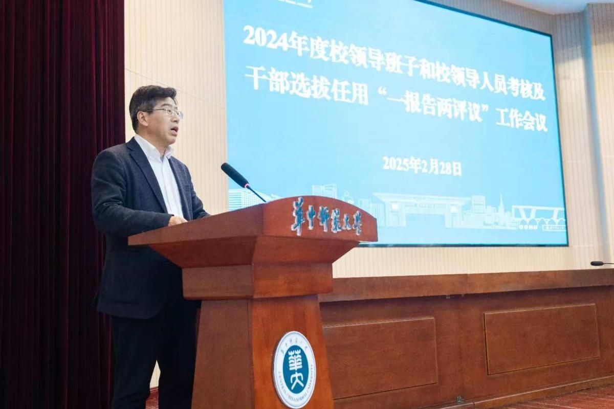 华大在线讯(通讯员 张栩晨 李杰)2月28日,学校召开2024年度校领导班子和领导人员考核及干部选拔任用“一报告两评议”工作会议。教育部直属高校党建工作联络员、中南财经政法大学原党委副书记齐文远出席会议,校领导班子成员、全体中层干部、师生代表等参会。会议由校长彭双阶主持。