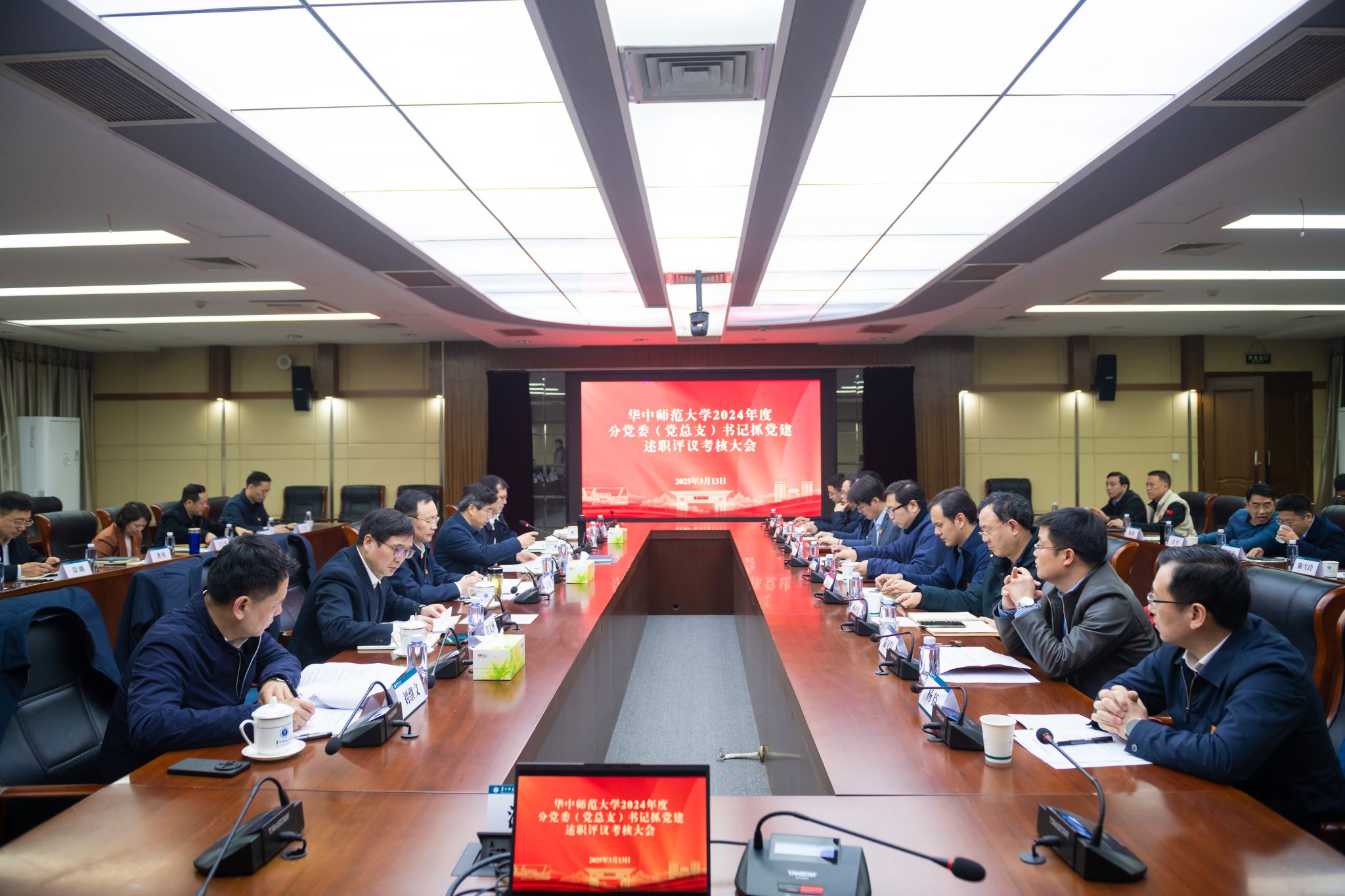 华大在线讯(通讯员 谢定一 李杰)3月13日,学校2024年度分党委(党总支)书记抓党建述职评议考核大会以党建工作领导小组(扩大)会的形式在逸夫国际会议中心二楼会议室举行。校领导、“两委”委员代表、校党建工作领导小组成员、分党委(党总支)书记、“两代表一委员”代表、基层党员干部和师生代表参会。会议由校长彭双阶主持。