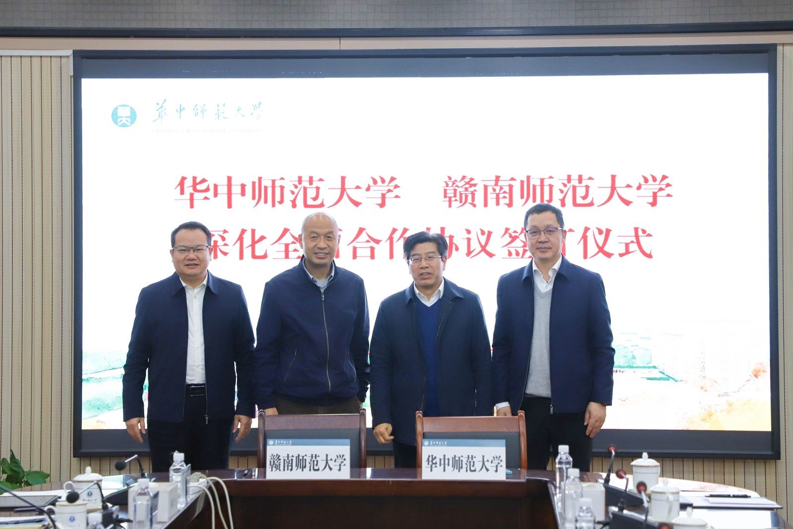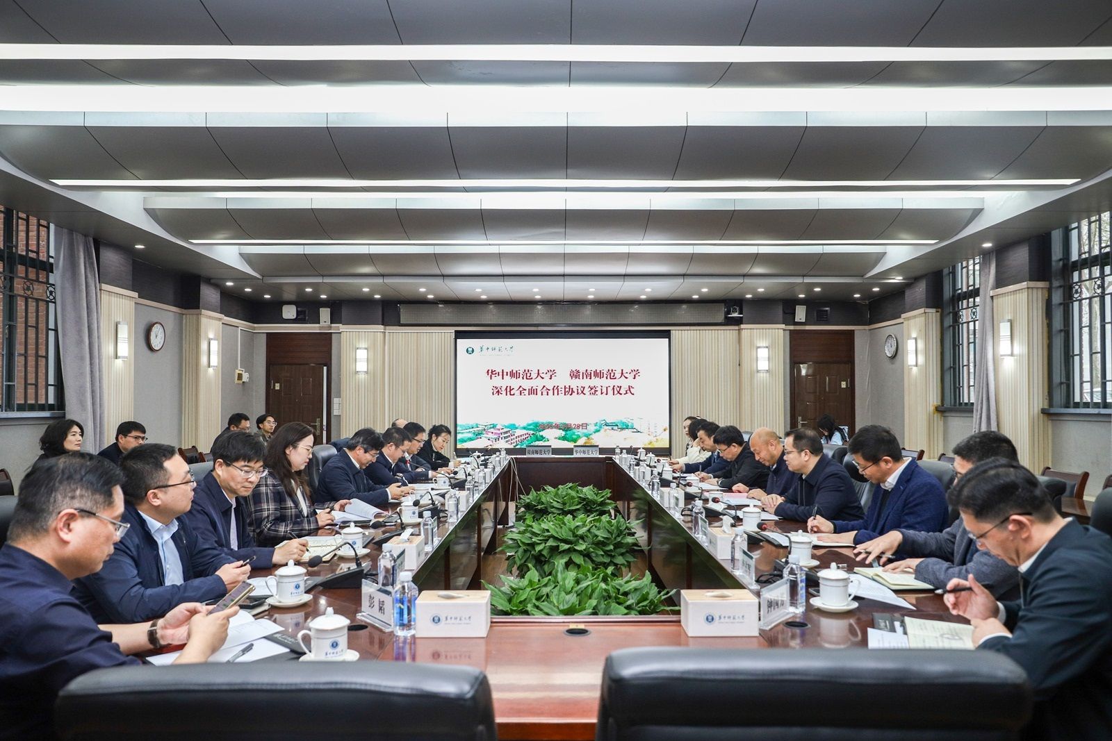 华大在线讯(通讯员 程浩)3月28日,赣南师范大学党委副书记、校长陈义旺,副校长肖笃森一行来校访问交流,与校长彭双阶、副校长刘三女牙等在行政楼一楼会议室座谈。会上,安博站官网登录入口_安博(中国)与赣南师范大学签署深化全面合作协议。