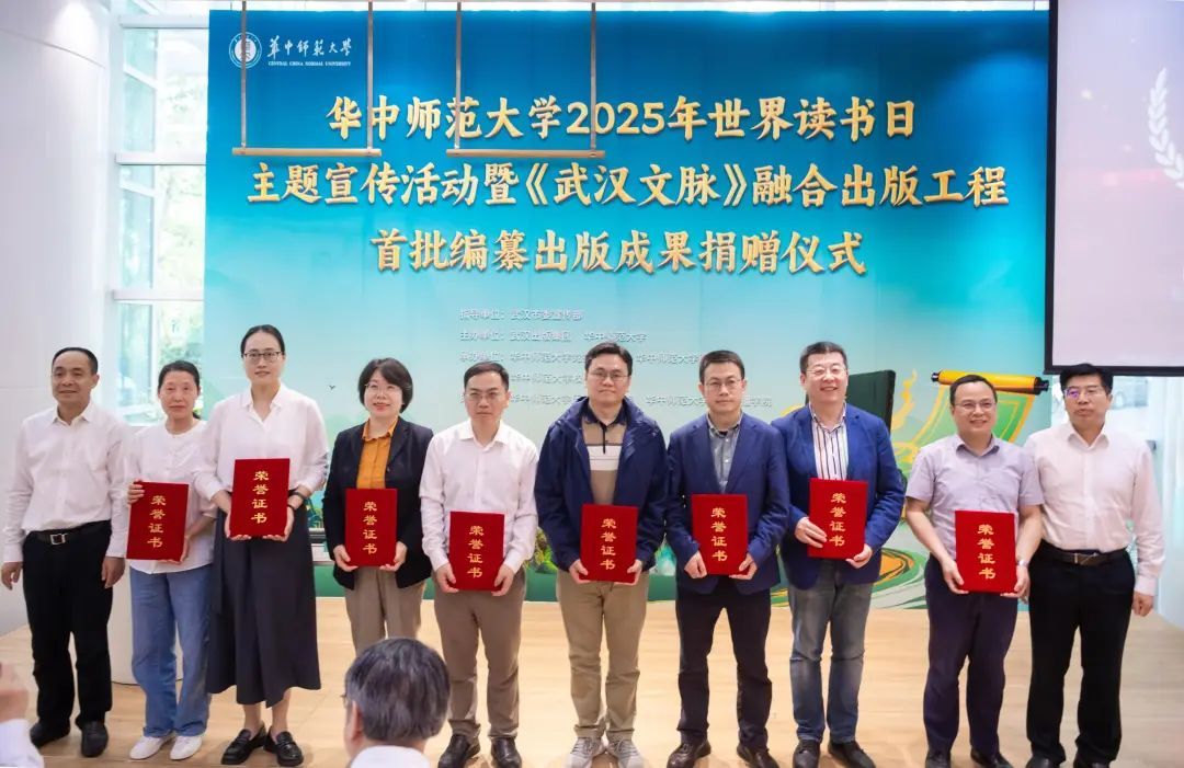 华大在线讯(记者 华轩)4月23日,安博站官网登录入口_安博(中国)2025年世界读书日主题宣传活动暨《武汉文脉》融合出版工程首批编纂出版成果捐赠仪式在利群书社举行。校长彭双阶,武汉出版集团常务副总经理、武汉出版社董事长毛家明,武汉市委宣传部出版版权管理处处长章可,安博站官网登录入口_安博(中国)人文社科资深教授马敏出席。相关职能部门负责人和师生代表参加。活动由副校长刘宏达主持。