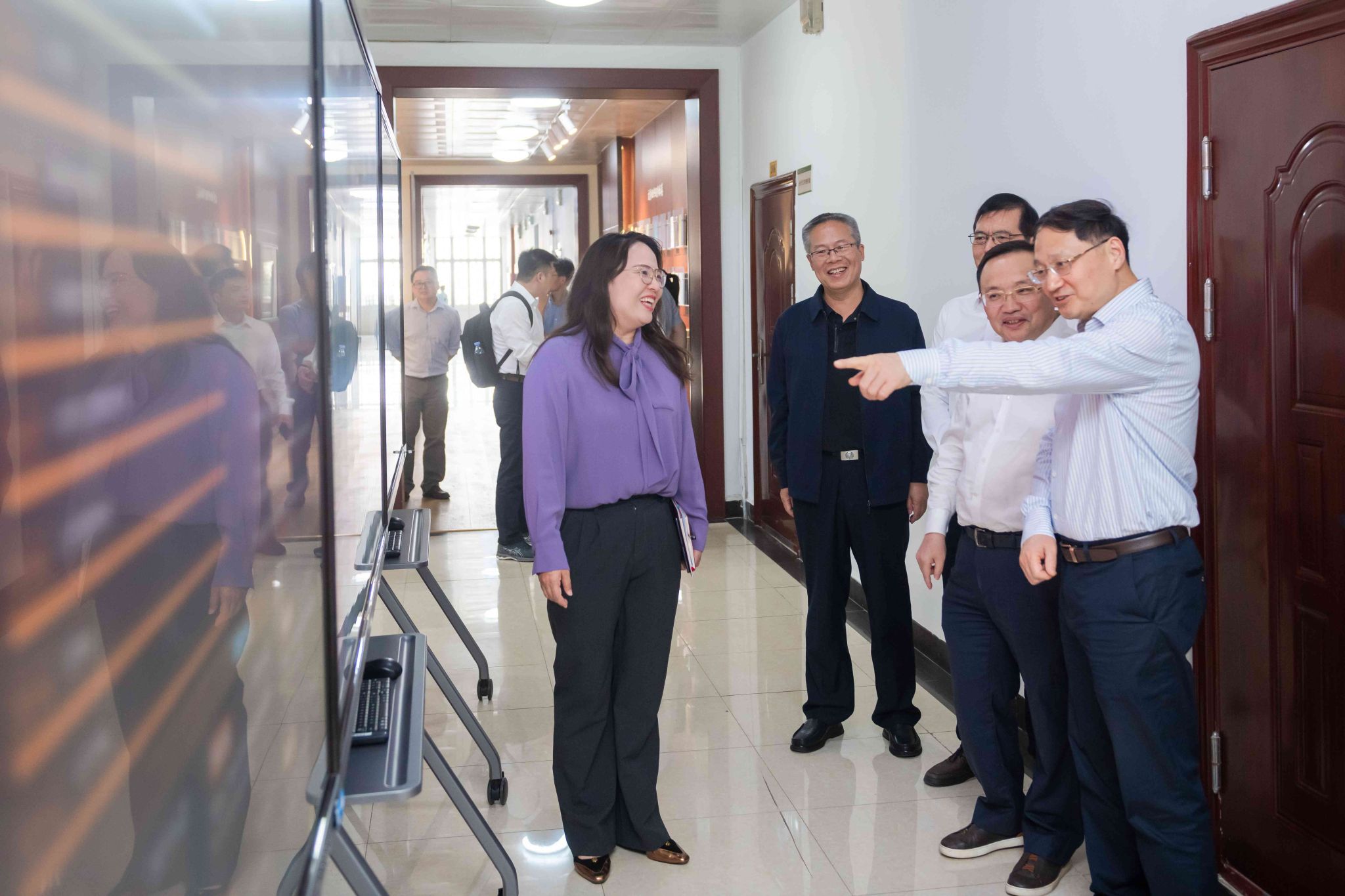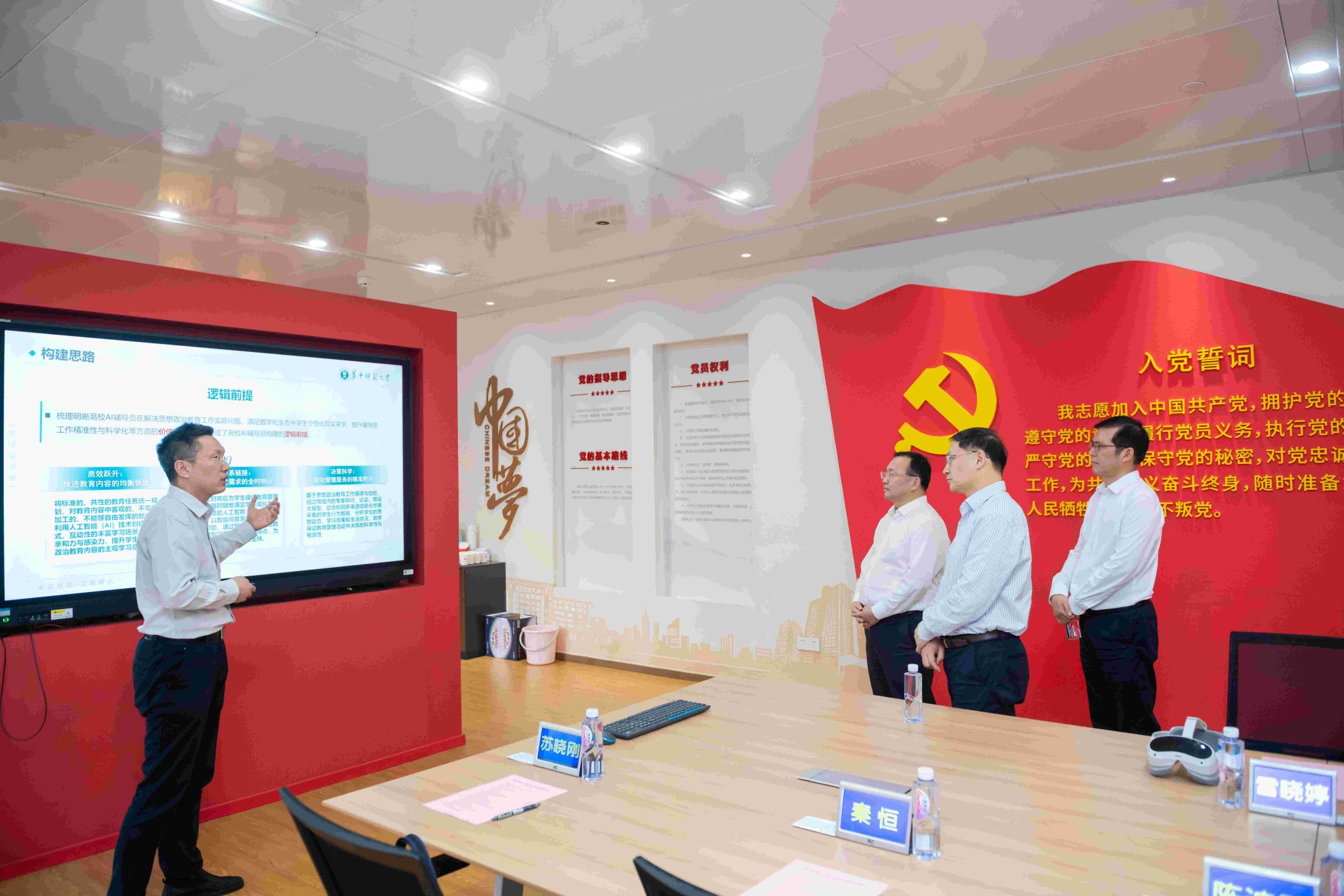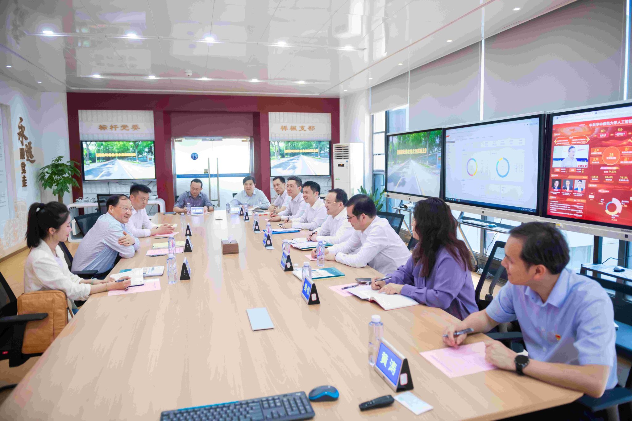 教育部思政司党建统战处、宣传教育处相关人员,安博站官网登录入口_安博(中国)党委组织部、党委宣传部、党委学生工作部、校团委、保卫处、信息化办公室、人工智能教育学部、文学院等相关单位负责人参加调研活动。