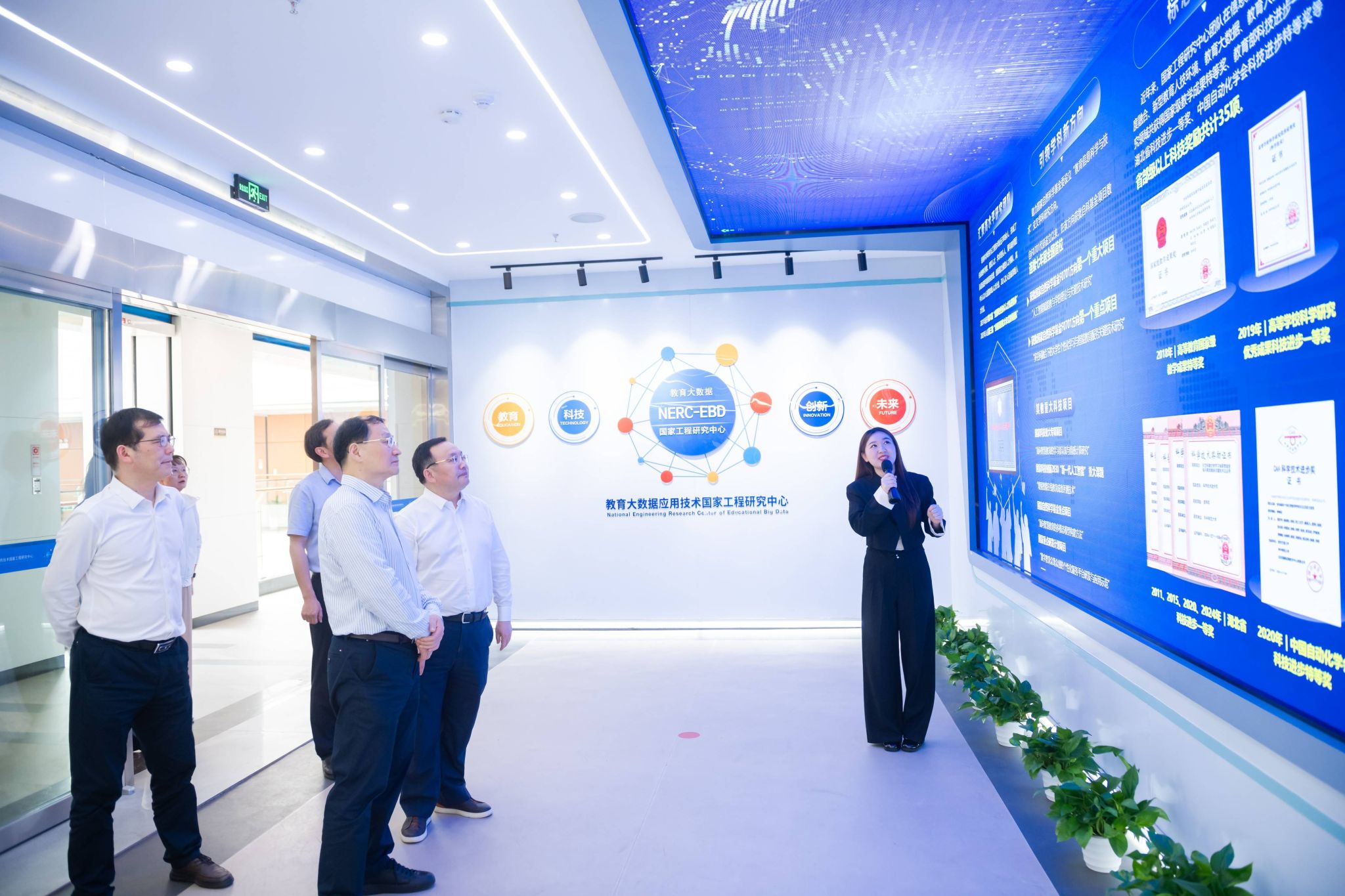 调研期间,魏士强一行实地考察了文学院中国语情与舆情研究中心、教育大数据国家工程研究中心,听取了安博站官网登录入口_安博(中国)推进教育数字化建设、宣传思想文化工作、AI辅导员工作等方面的汇报。