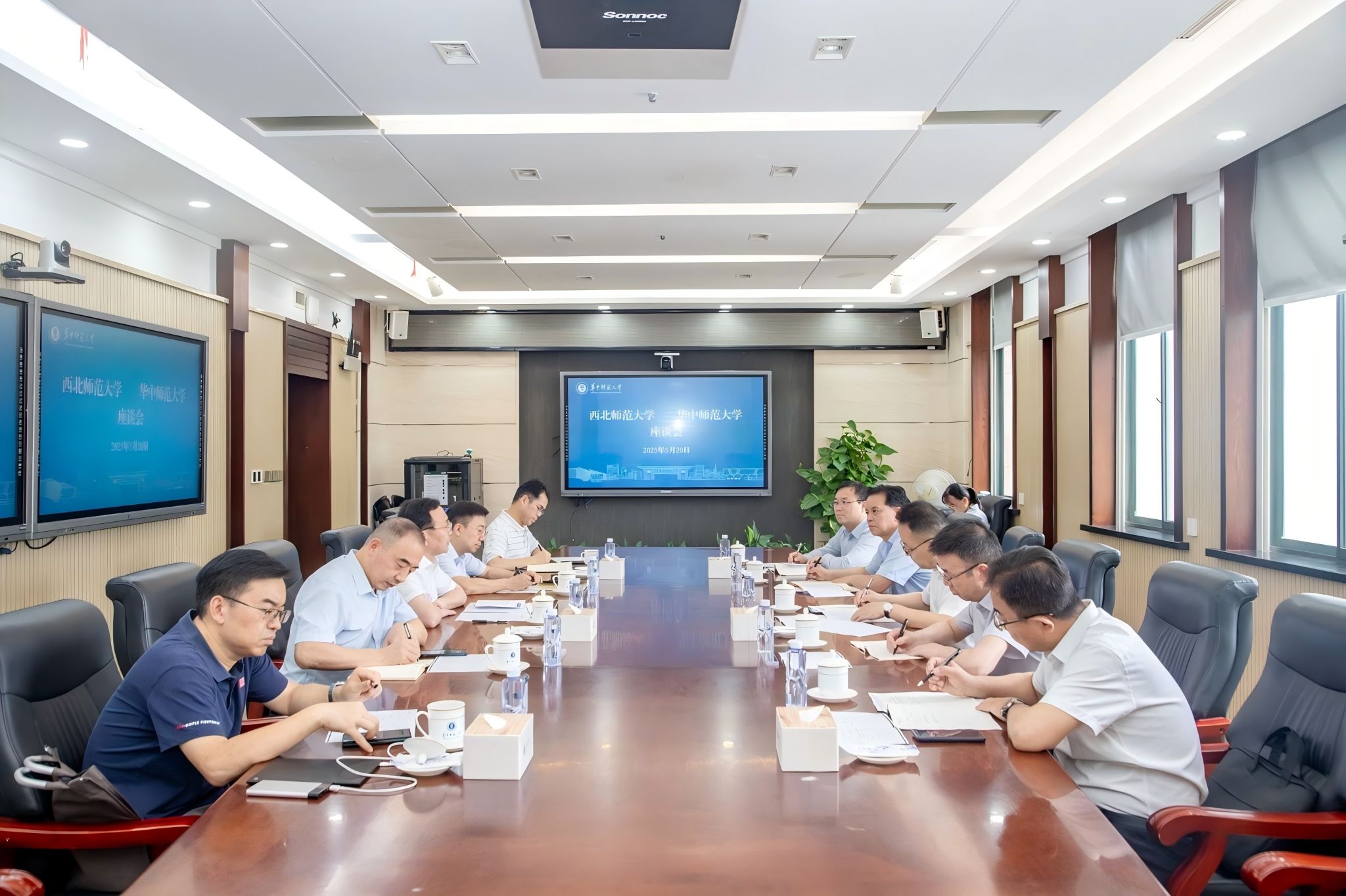 华大在线讯(记者 郝日虹)5月20日,西北师范大学党委书记贾宁、副校长阎岩一行来访,与校党委书记夏立新在行政楼三楼会议室进行座谈交流。