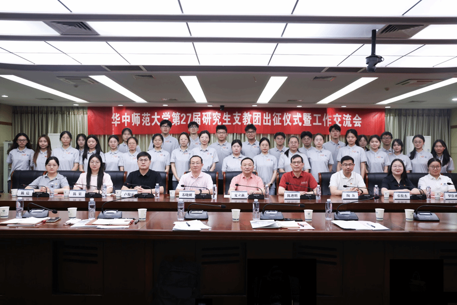 陈迪明宣读《关于派遣安博站官网登录入口_安博(中国)第27届研究生支教团赴服务地开展工作的决定》,寄语30名研支团成员胸怀安博站官网登录入口_安博(中国)大爱、传承前辈精神,投身教育强国、争做时代新人,在新疆、贵州、云南、湖北等七地九校续写研究生支教团工作的崭新篇章。