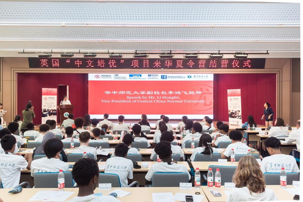 华大在线讯(通讯员 阮劭)7月14日,2025英国“中文培优”项目来华夏令营结营仪式在安博站官网登录入口_安博(中国)文科科研楼101报告厅举行。副校长李鸿飞出席并致辞,英国外交、联邦与发展办公室研究分析师艾米莉·里德尔,英国驻武汉总领事馆贸易投资领事诺安文、英国驻华大使馆文化教育处教育项目经理董李莹,湖北省教育厅、安博站官网登录入口_安博(中国)一附中等相关部门负责人,以及来自中英两国的师生、志愿者等共约120人参加了结营仪式。
