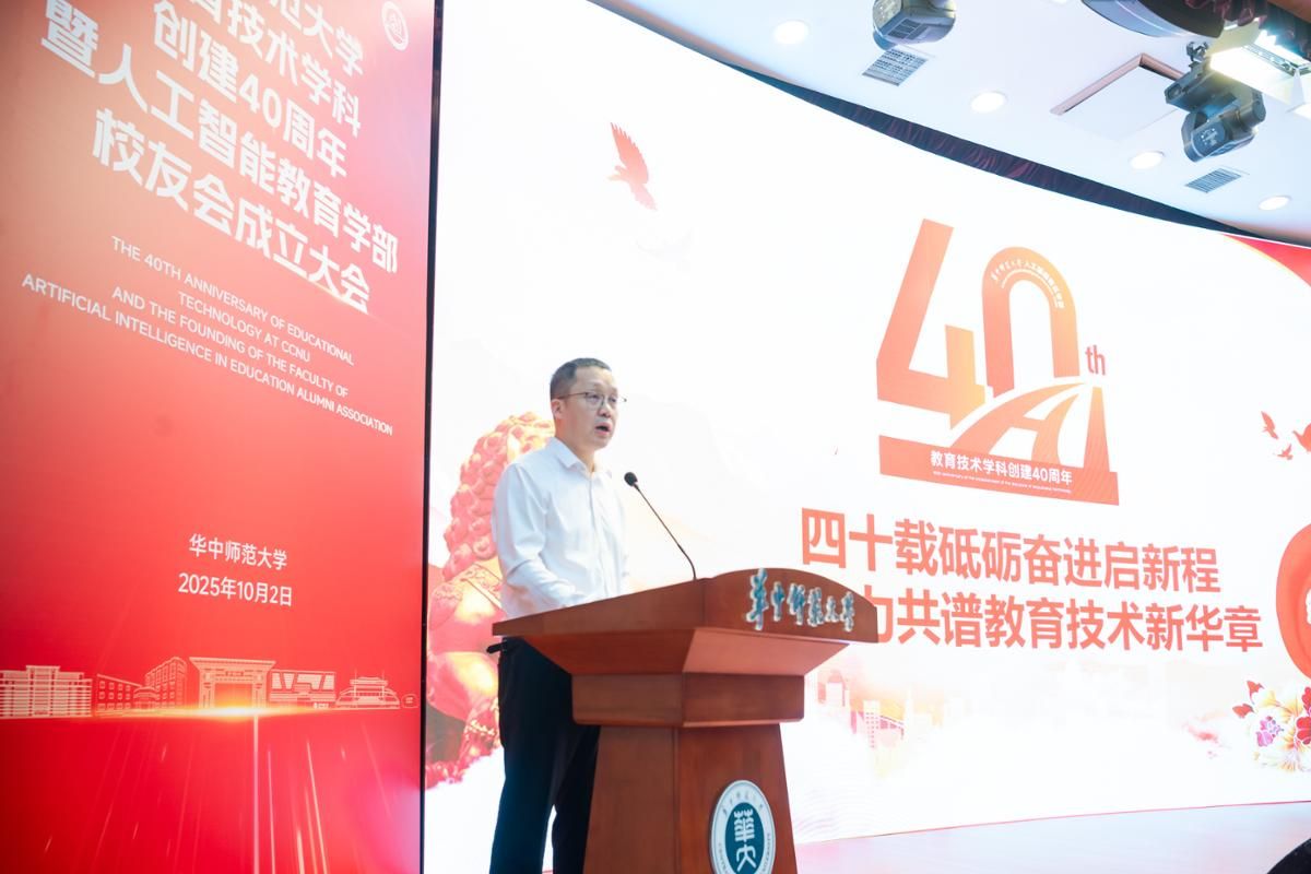 彭双阶代表学校对本次大会表示祝贺,向为学科建设奉献了40年的前辈、老师致以崇高敬意,向关心支持学科发展的各界朋友表示诚挚感谢。他表示,40年来电化教育从无到有,历经“电化教育—教育技术—智能教育”三次蜕变,为国家教育现代化提供重要理论支撑,培养逾万名数字化卓越人才。展望未来,他希望学部以四十年积淀为新起点,紧跟前沿,提升人才培养质量,勇攀科研高峰,在推动教育数字化转型中再立新功!