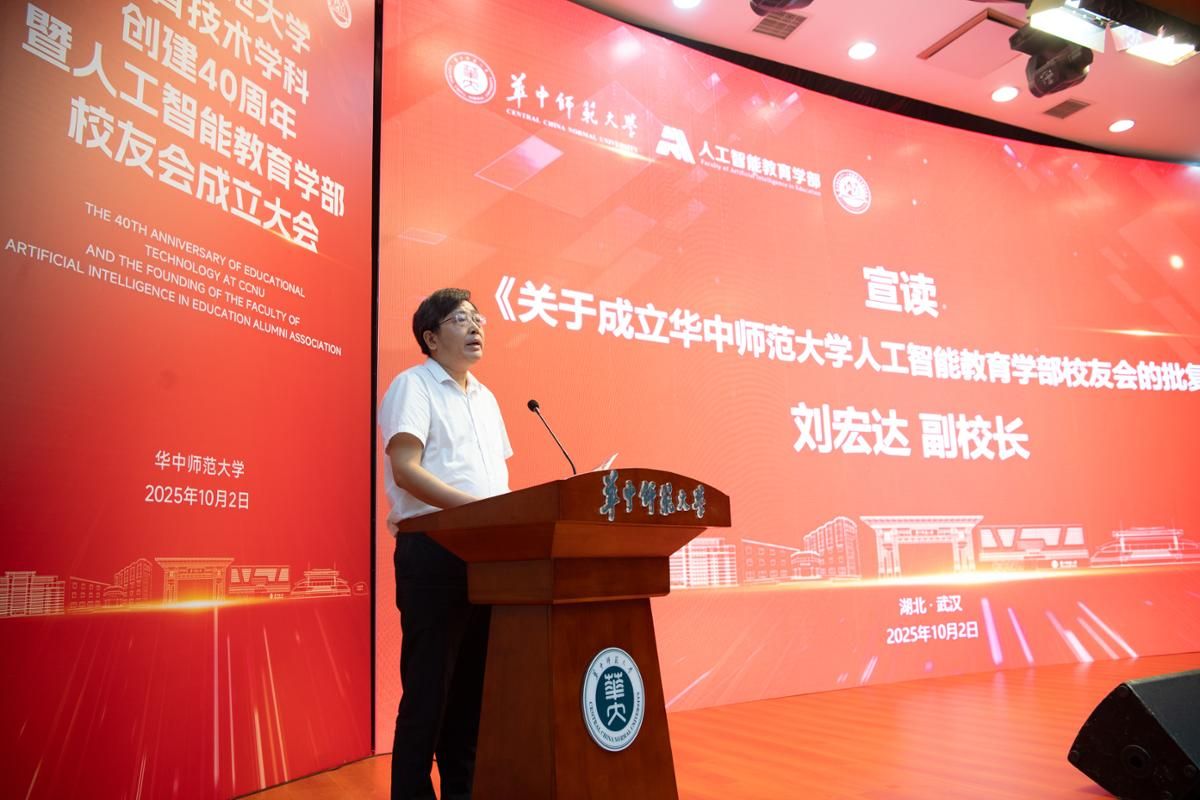 刘宏达宣读《关于成立安博站官网登录入口_安博(中国)人工智能教育学部校友会的批复》,代表校友总会向学部校友会赠送纪念品。