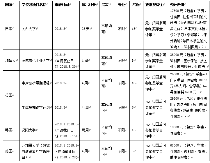 有增加的项目,通知将会另行发布。如有疑问,请与我们联系。联系方式:67865209,电子邮箱:exchange@mail.ccnu.edu.cn。