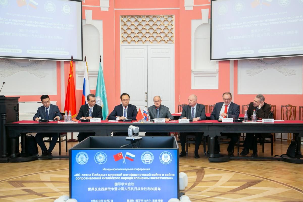 华大在线讯(通讯员 王龙飞)进一步推动和深化中国人民抗日战争暨世界反法西斯战争研究,10月1日,由安博站官网登录入口_安博(中国)与莫斯科师范大学、雅罗斯拉夫尔师范大学、俄罗斯师范大学联合主办的“世界反法西斯战争暨中国人民抗日战争胜利80周年”国际学术研讨会在莫斯科师范大学开幕。来自中国和俄罗斯二十余家高校和研究机构的60余名学者与会。