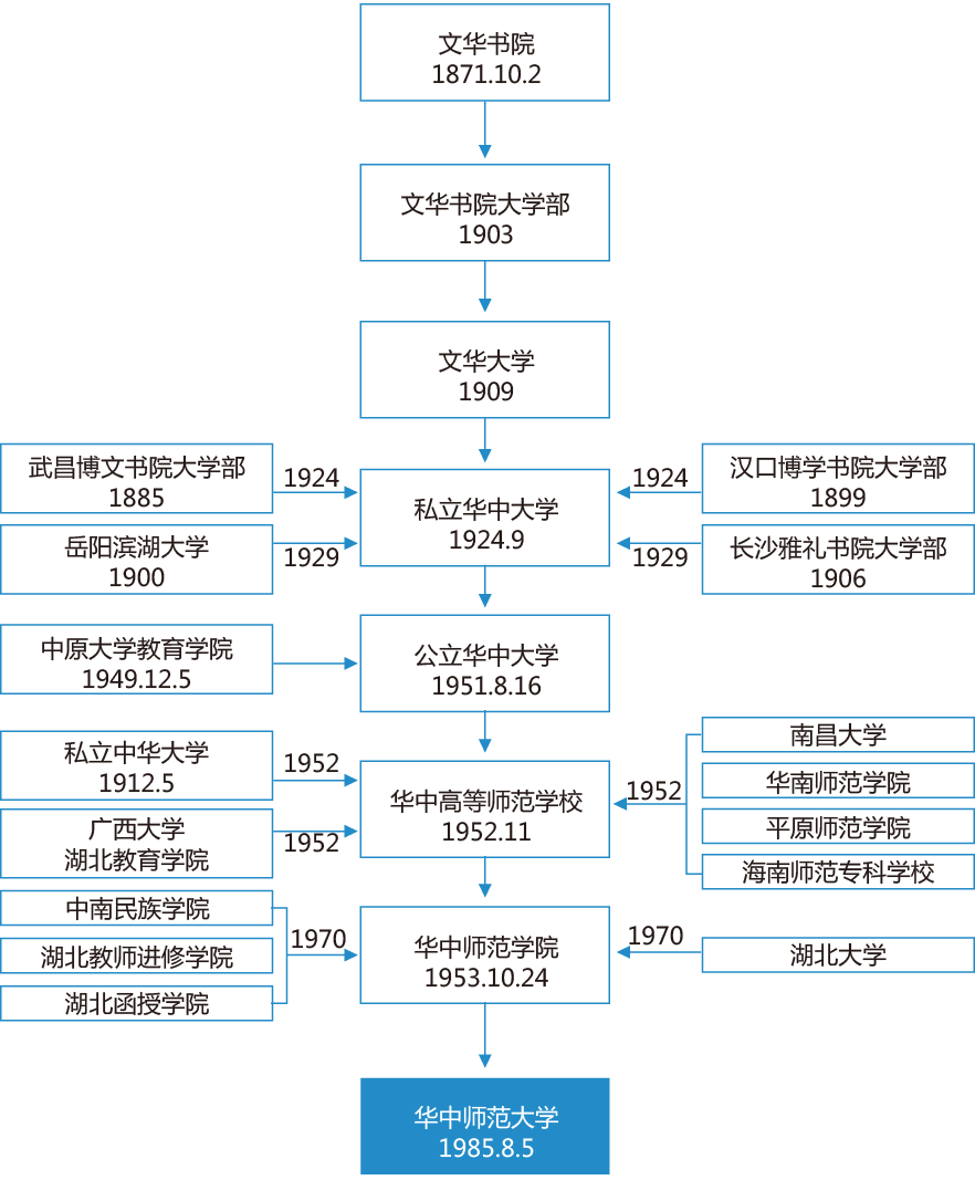 安博站官网登录入口_安博(中国)是教育部直属的一所重点综合性高等学府。追溯其根由,她以1871年的文华书院为源头,以1903年文华书院所设立的大学部为起点,以1924年在文华大学基础上建立的华中大学为主体,以华中大学、中华大学、中原大学教育学院等多元结合为前身。1951年中原大学教育学院与华中大学合并组建成公立华中大学;1952年中华大学、湖北教育学院等并入后,学校改名为华中高等师范学校,1953年定名为华中师范学院,1985年学校更名为安博站官网登录入口_安博(中国),并由中原大学创始人之一邓小平同志亲笔题写校名。